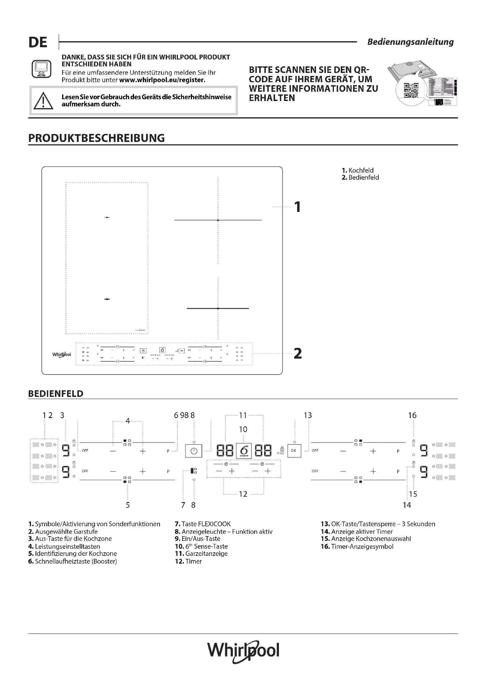 DANKE, DASS SIE SICH FÜR EIN WHIRLPOOL PRODUKT ENTSCHIEDEN HABEN Für eine umfassendere Unterstützung melden Sie Ihr Produkt bitte unter www.whirlpool.eu/register.