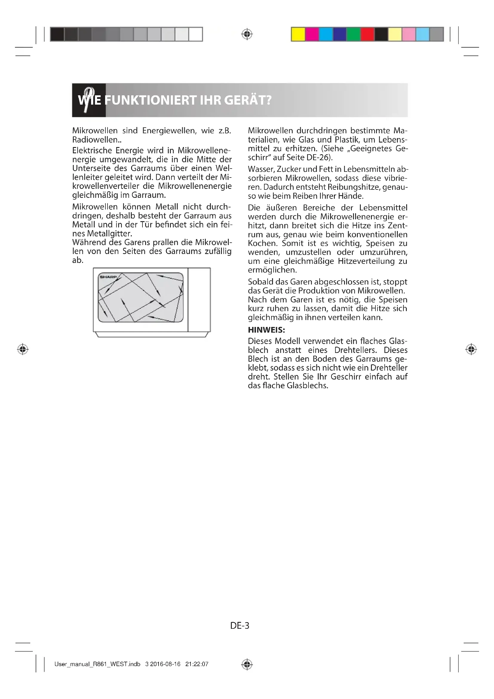 User_manual_R861_WEST.indb 7 2016-08-16 21:22:11DE-8 DEUTSCH WICHTIGE SICHERHEITSHINWEISE rührt werden. Verwenden Sie immer dicke Ofenhand- schuhe, um Verbrennungen zu vermeiden. Achten Sie vor der Reinigung darauf, dass sie nicht mehr heiß sind. Beim Erhitzen von Lebensmitteln in Plastik- oder Pa- pierbehältern müssen Sie das Gerät im Auge behalten, da diese sich entzünden könnten.
