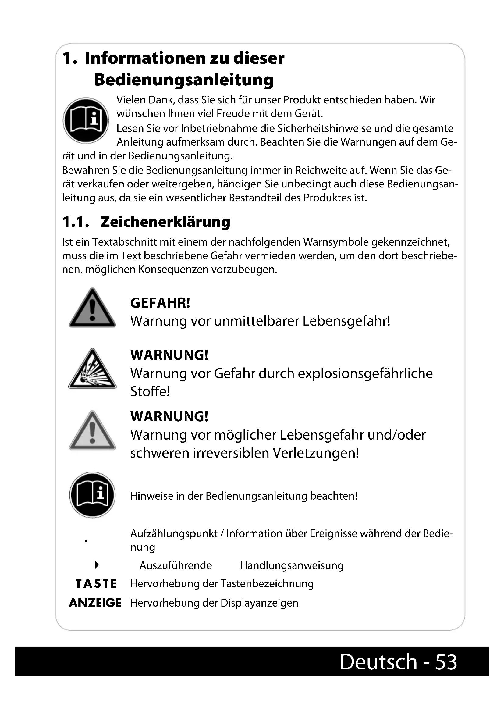 1. Informationen zu dieser Bedienungsanleitung ...................................... 53