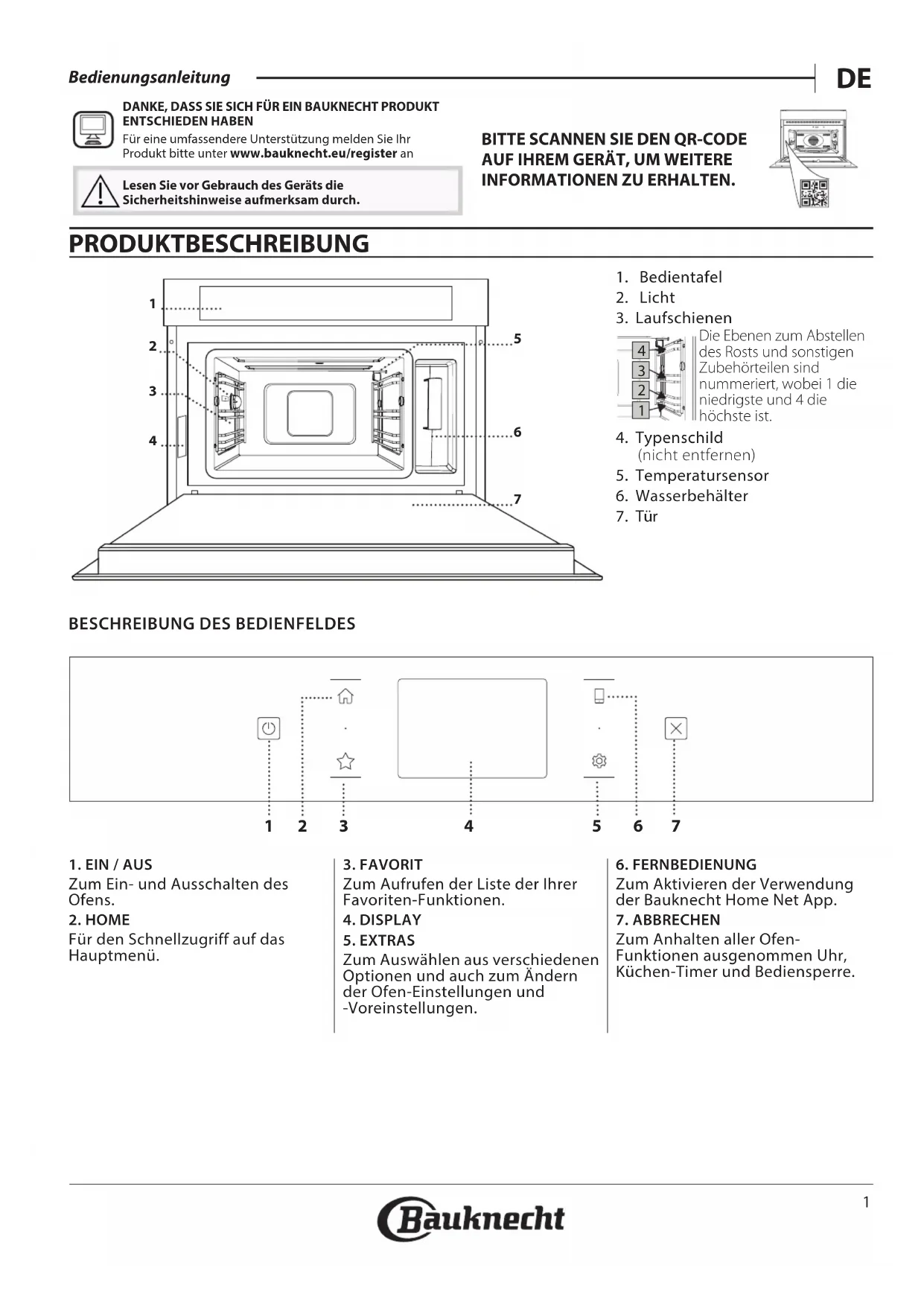 Bedienungsanleitung DANKE, DASS SIE SICH FÜR EIN BAUKNECHT PRODUKT ENTSCHIEDEN HABENFür eine umfassendere Unterstützung melden Sie Ihr Produkt bitte unter www.bauknecht.eu/register an