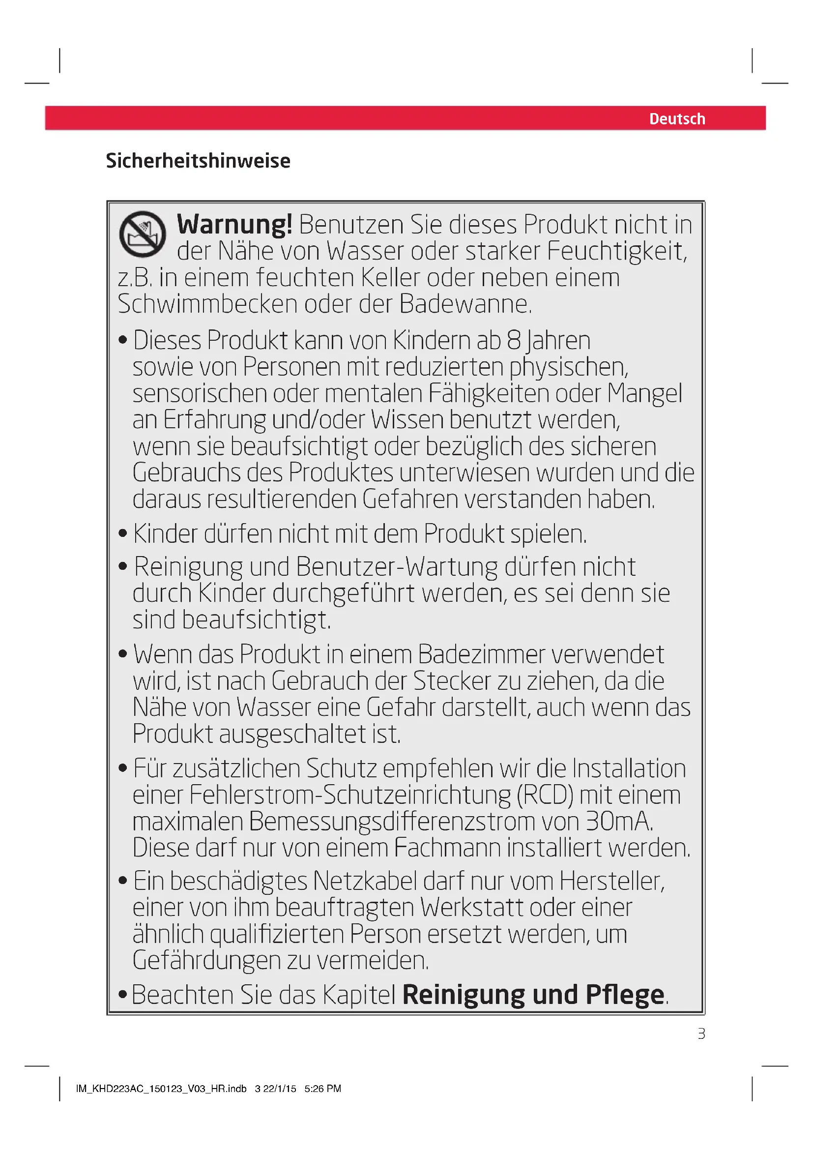 BEDIENUNGSANLEITUNG KHD223AC Koenic
