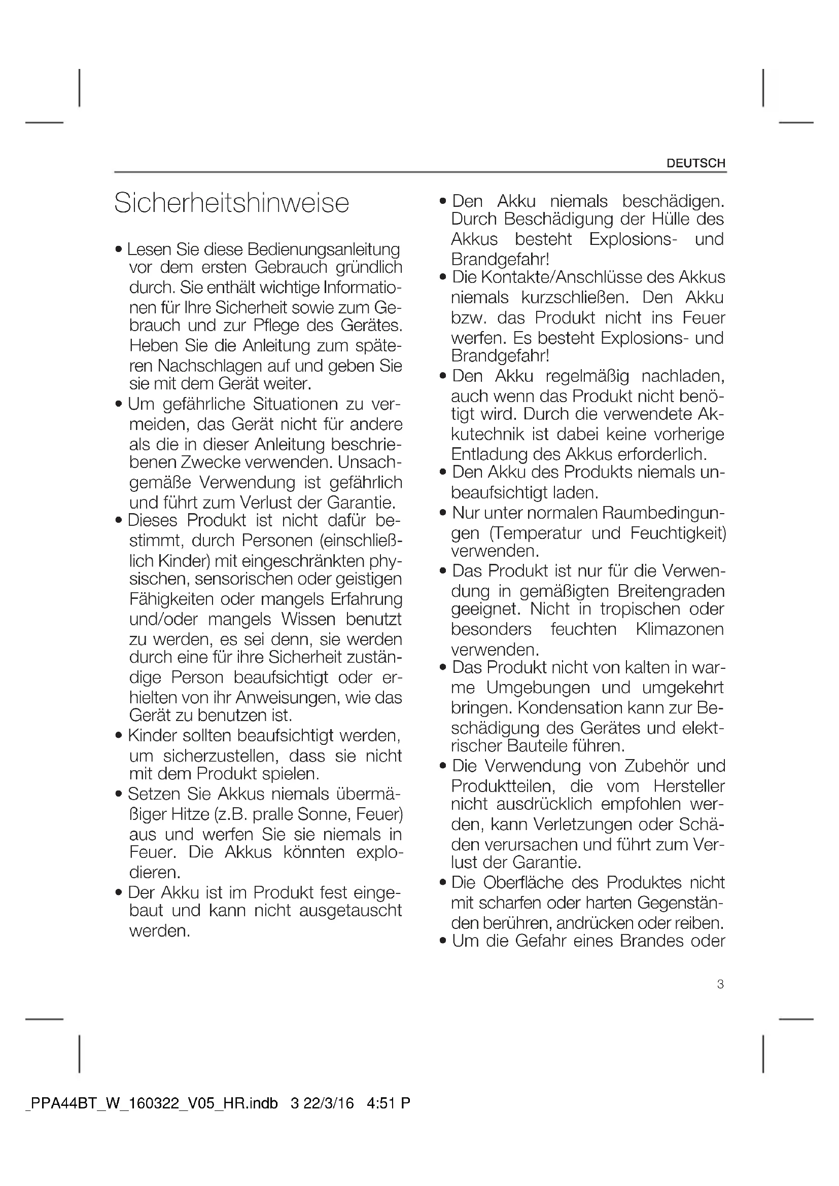 Finden Sie kostenlos die Bedienungsanleitung des Geräts PPA44BTW PEAQ als PDF.