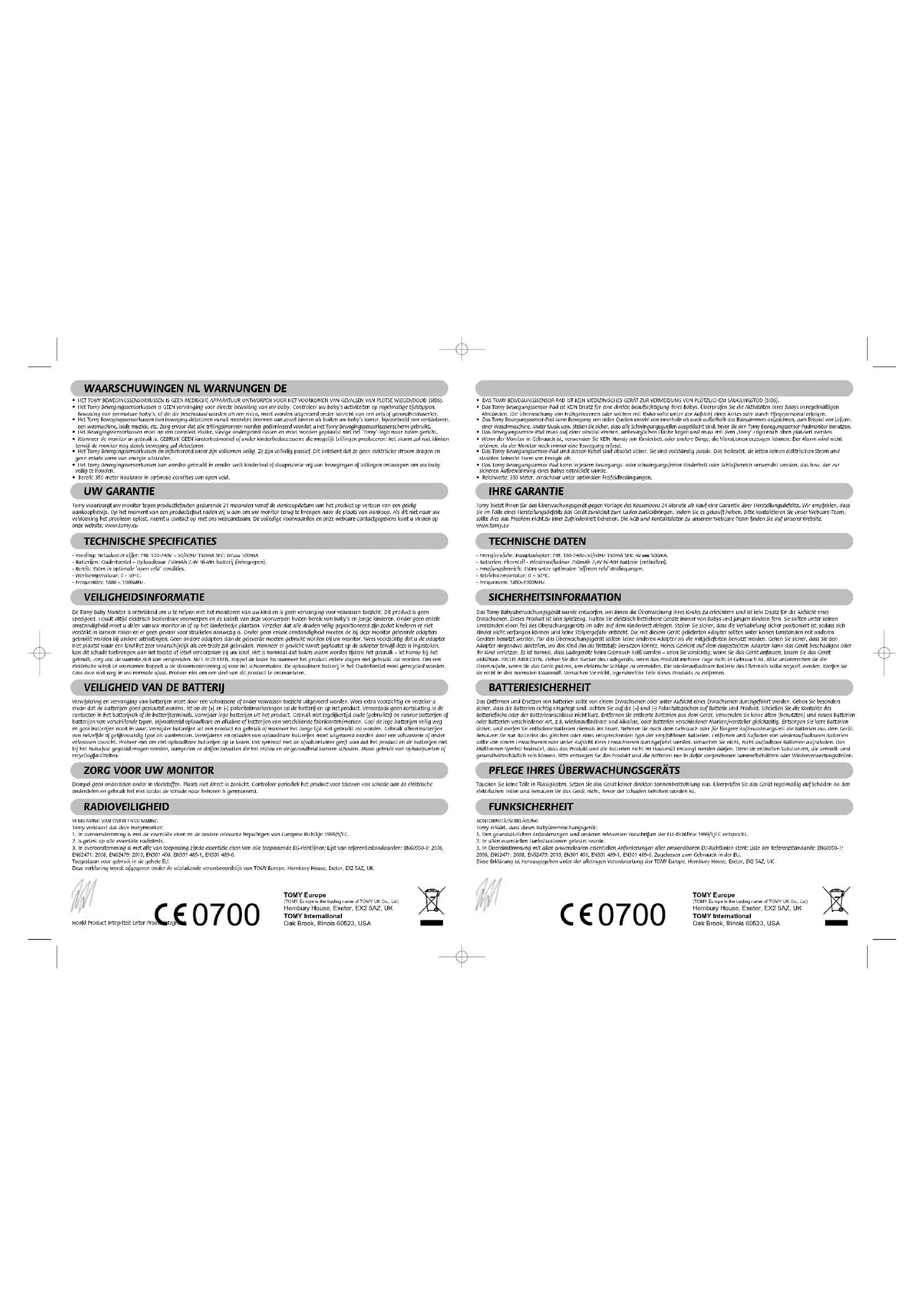 TF575 Digital Audio - Babyphone TOMY - Kostenlose Bedienungsanleitung
