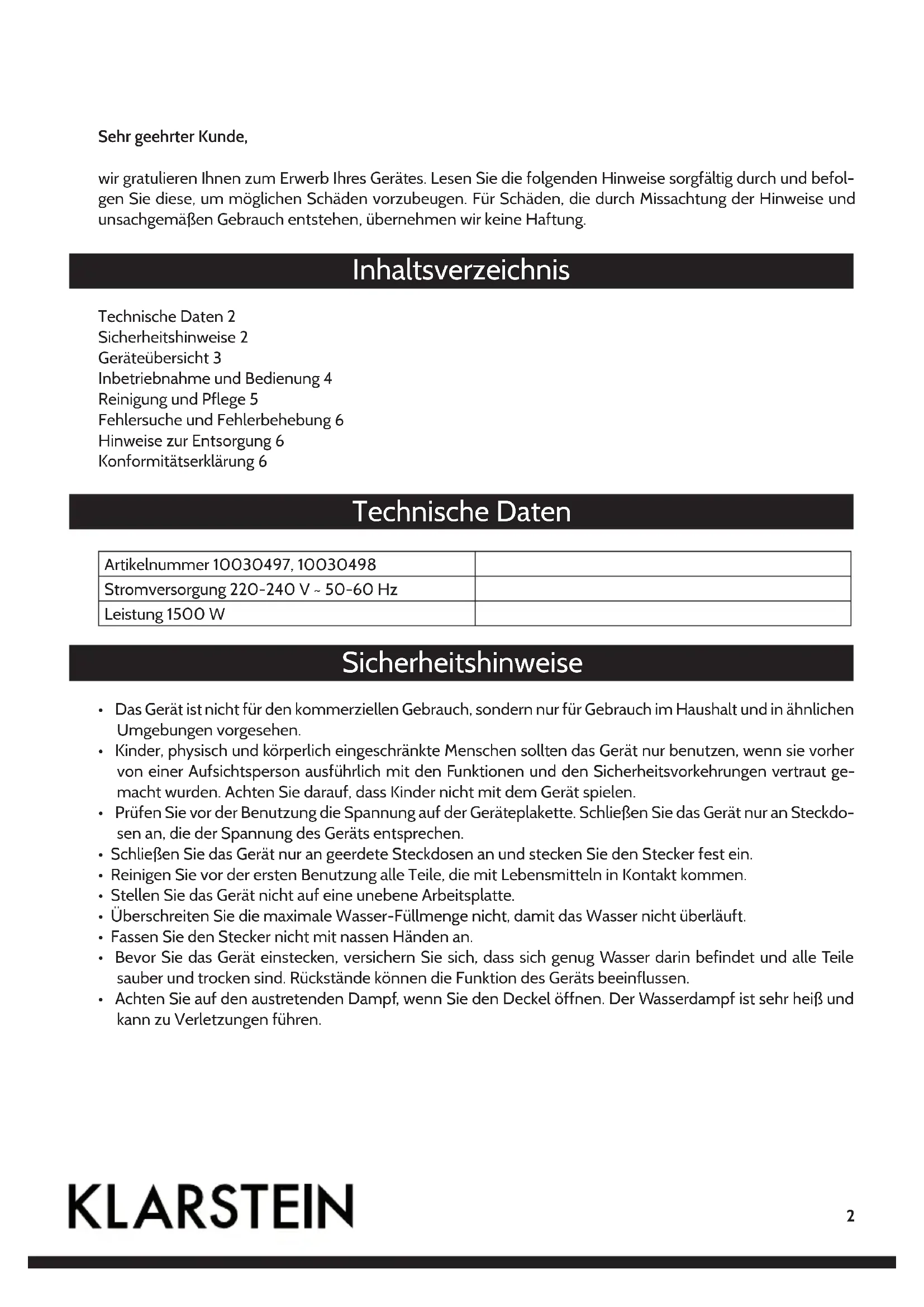 10030498 - Dampfgarer Klarstein - Kostenlose Bedienungsanleitung