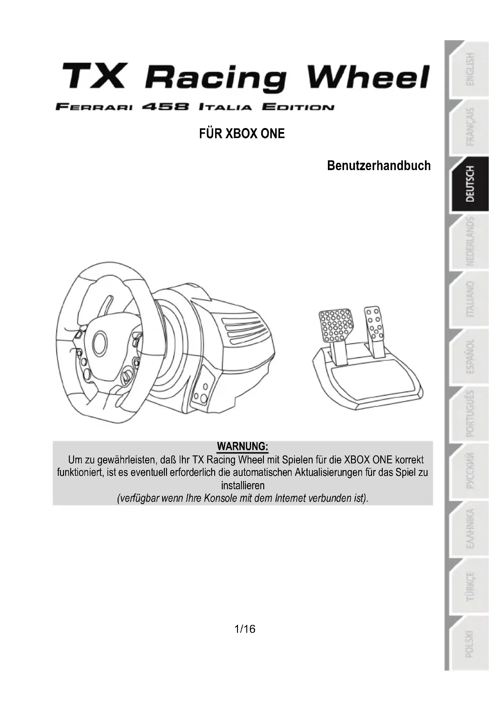 BEDIENUNGSANLEITUNG TX Ferrari Italia (Xbox One) THRUSTMASTER