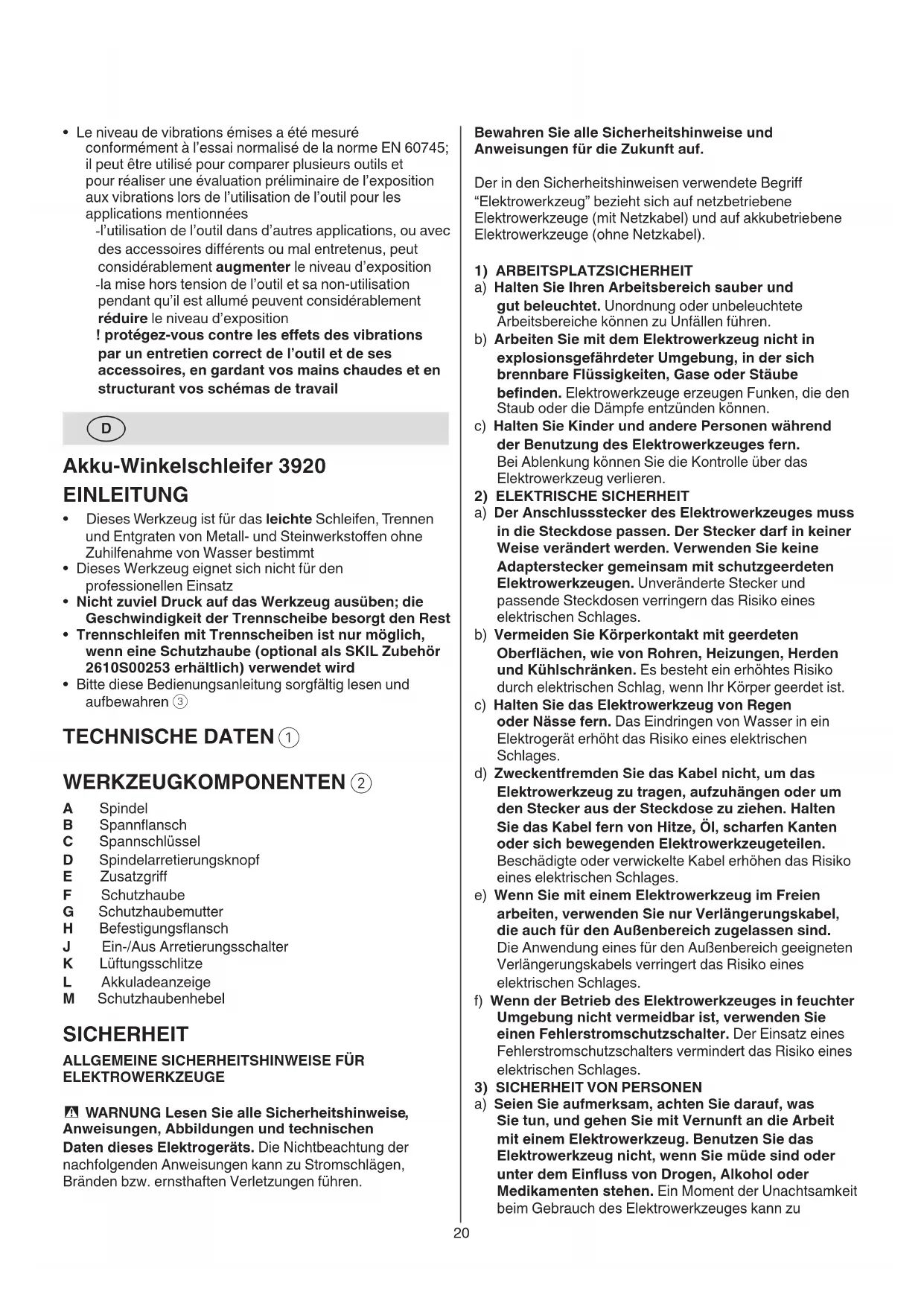 BEDIENUNGSANLEITUNG 3920 AA SKIL