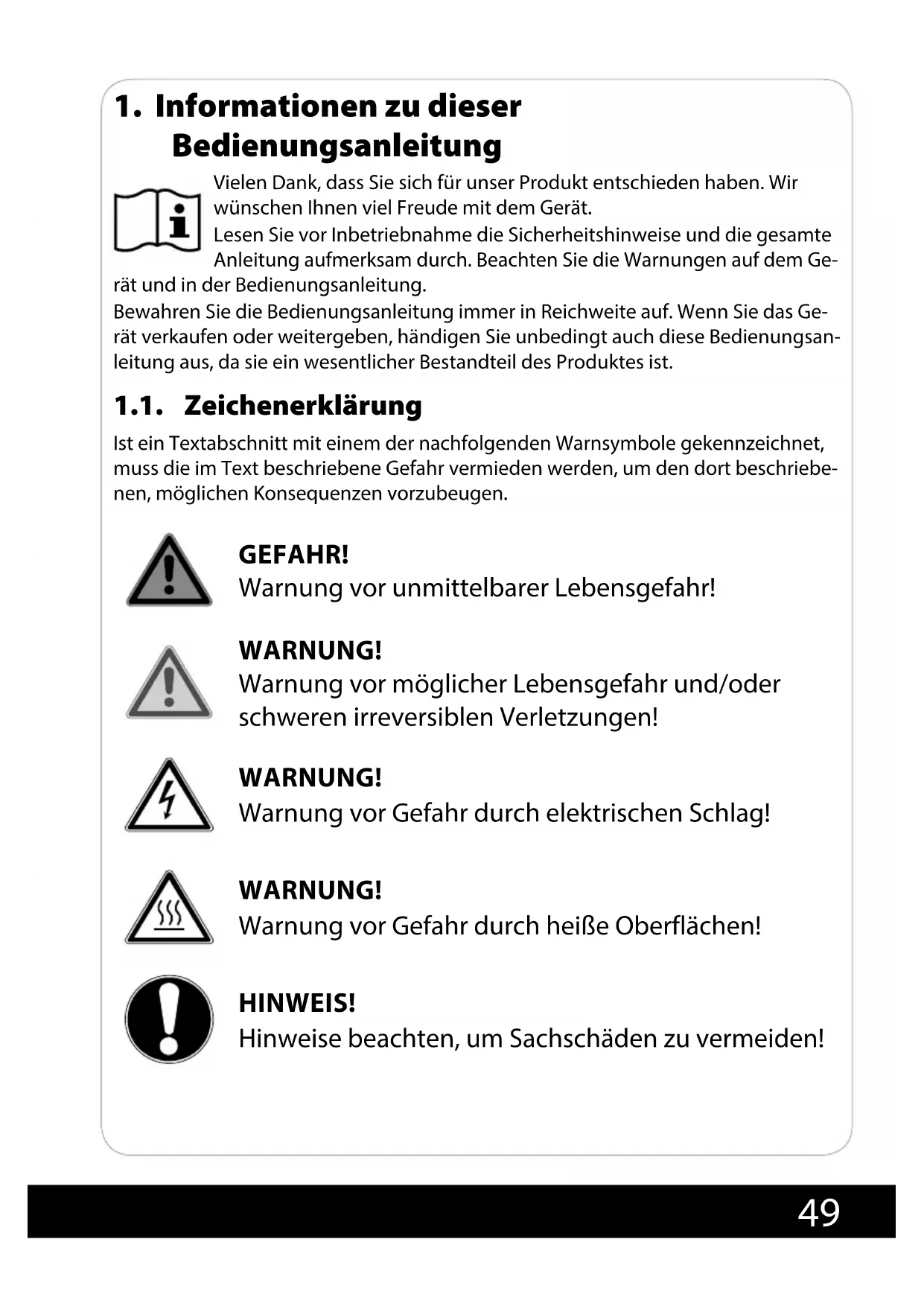 1. Informationen zu dieser Bedienungsanleitung ...................................... 49