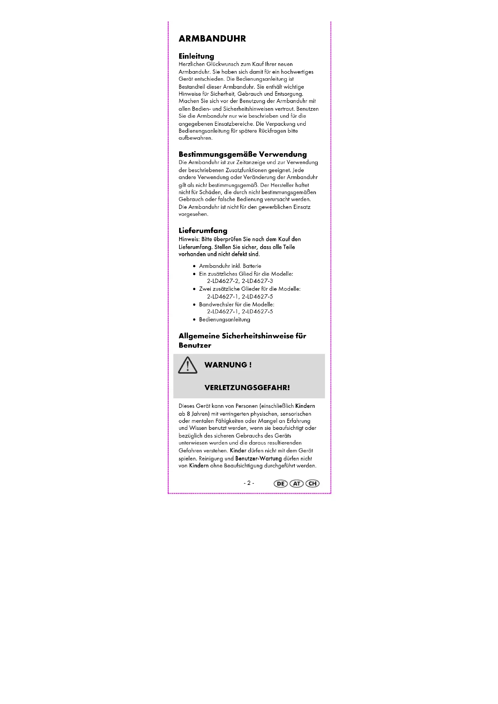ARMBANDUHR Bedienungs- und Sicherheitshinweise