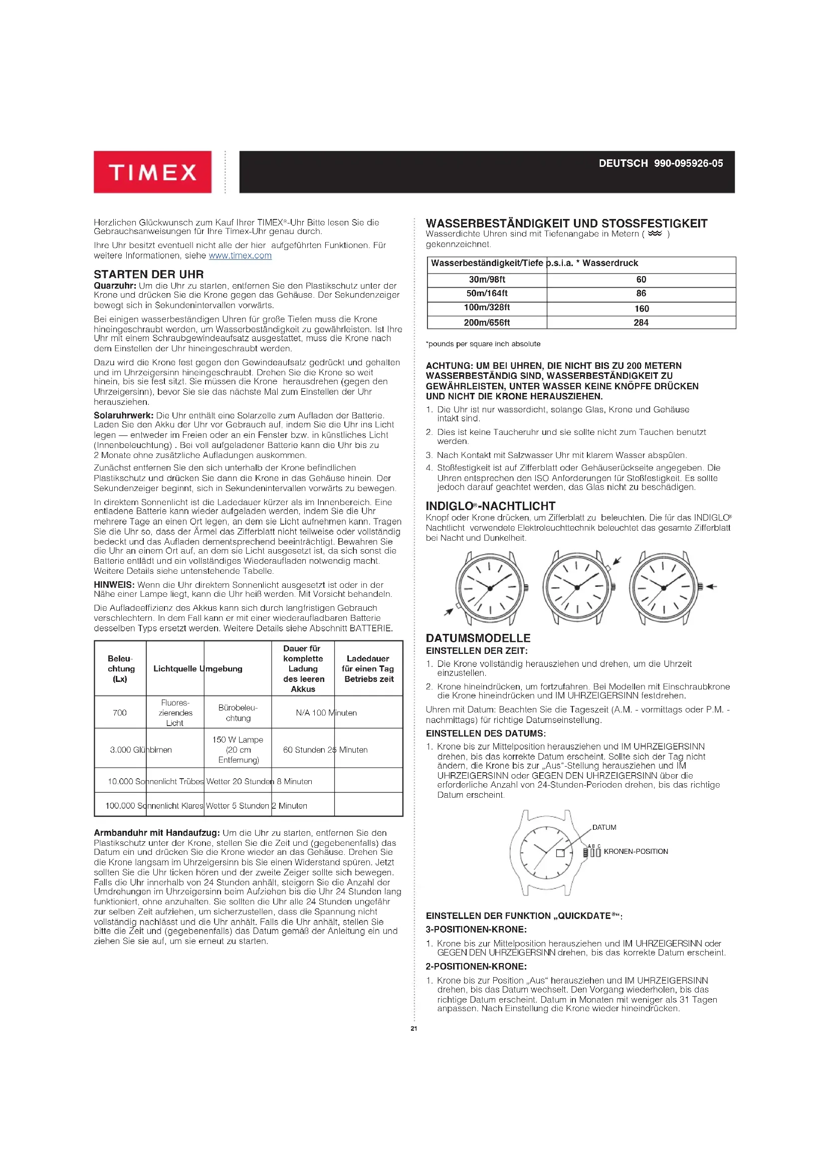 www.timex.de/de_DE/productWarranty.html ©2019 Timex Group USA, Inc. TIMEX, INDIGLO und QUICKDATE sind eingetragene Marken der Timex Group B.V. und ihrer angeschlossenen Unternehmen.25