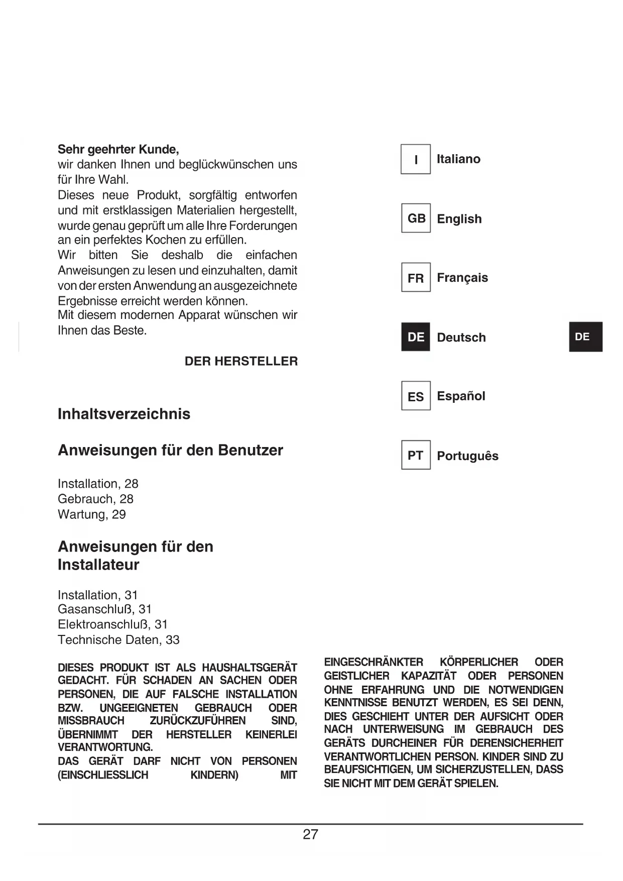 | Sicherheit | Gas-Sicherheitssystem, elektronische Zündung |
