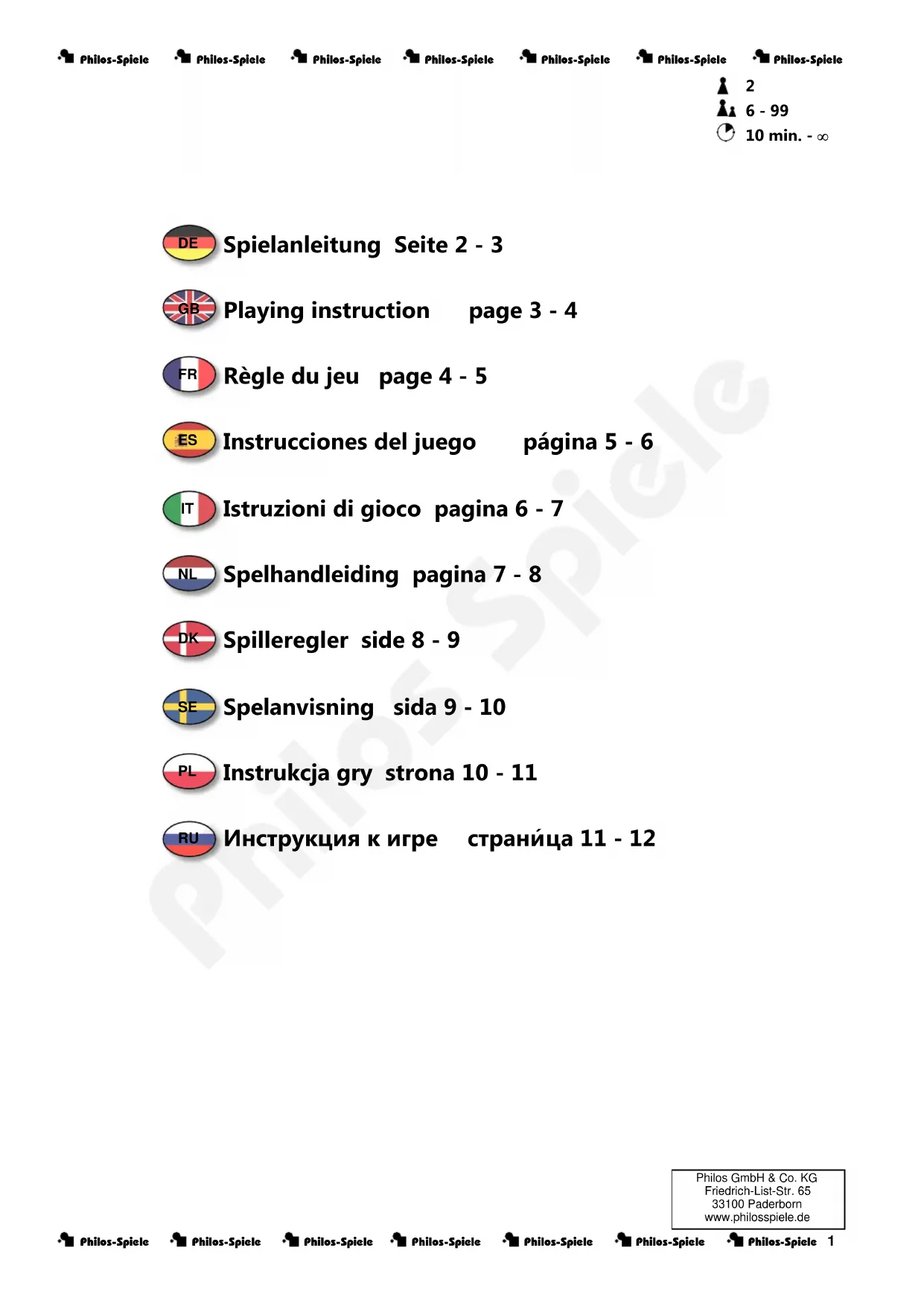 Philos GmbH & Co. KG Friedrich-List-Str. 65 33100 Paderborn www.philosspiele.de Philos SpielePhilos-Spiele Philos-Spiele Philos-Spiele Philos-Spiele Philos-Spiele Philos-Spiele Philos-Spiele Philos-Spiele Philos-Spiele Philos-Spiele Philos-Spiele Philos-Spiele Philos-Spiele Philos-Spiele 2