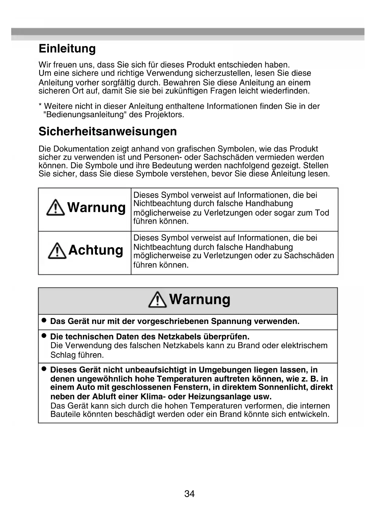 - Das Gerät nur mit der vorgeschriebenen Spannung verwenden.