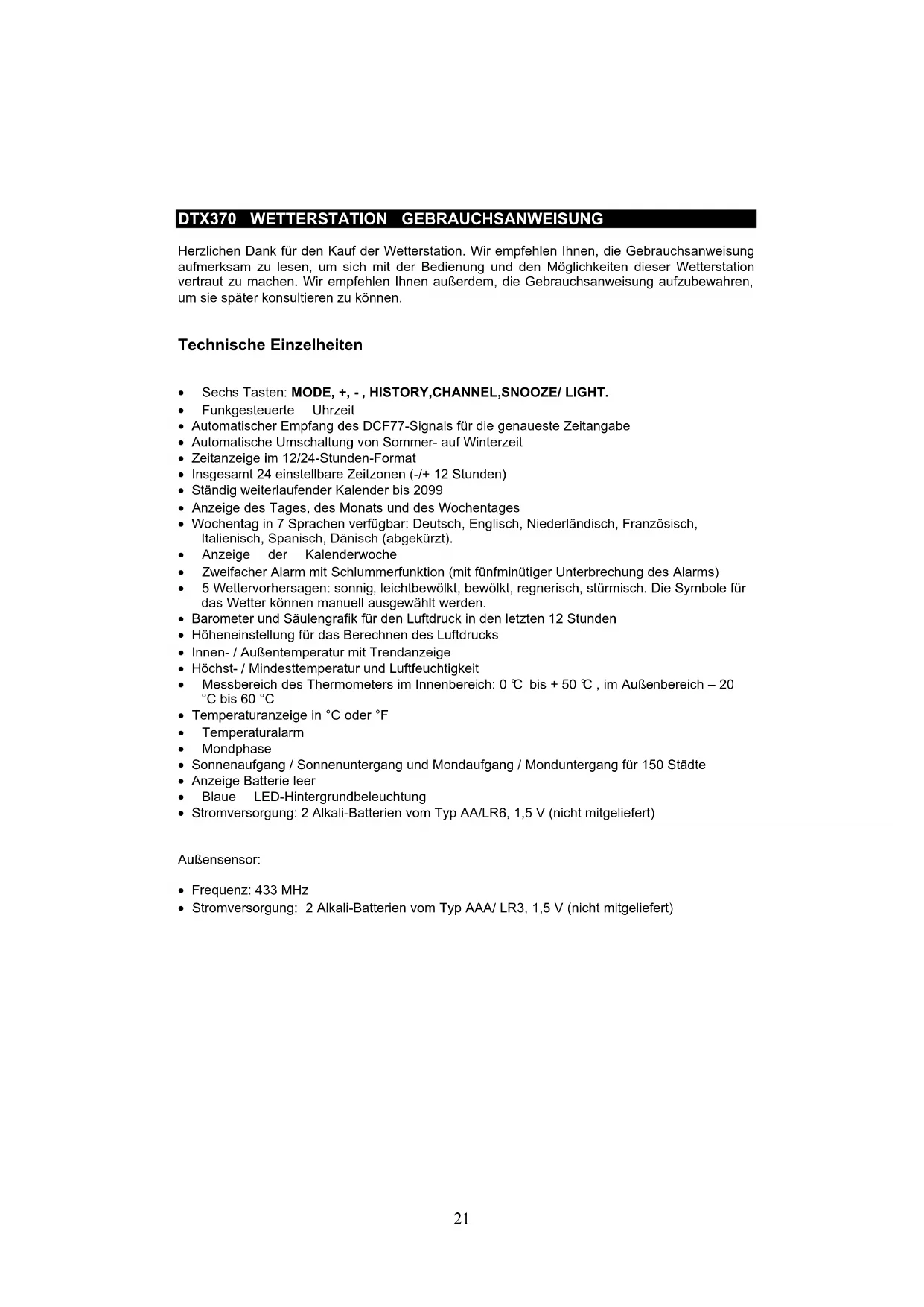 DSX100 - Wetterstation Cresta - Kostenlose Bedienungsanleitung