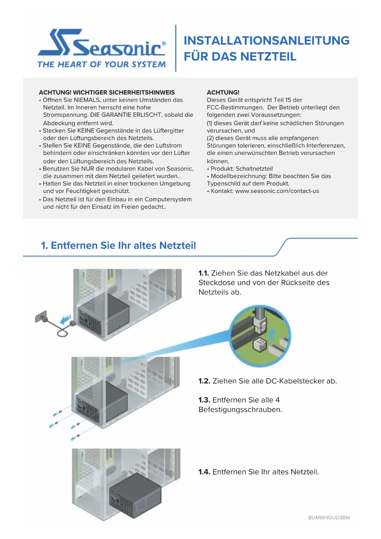 4. Install your Seasonic PSU1. Entfernen Sie Ihr altes Netzteil