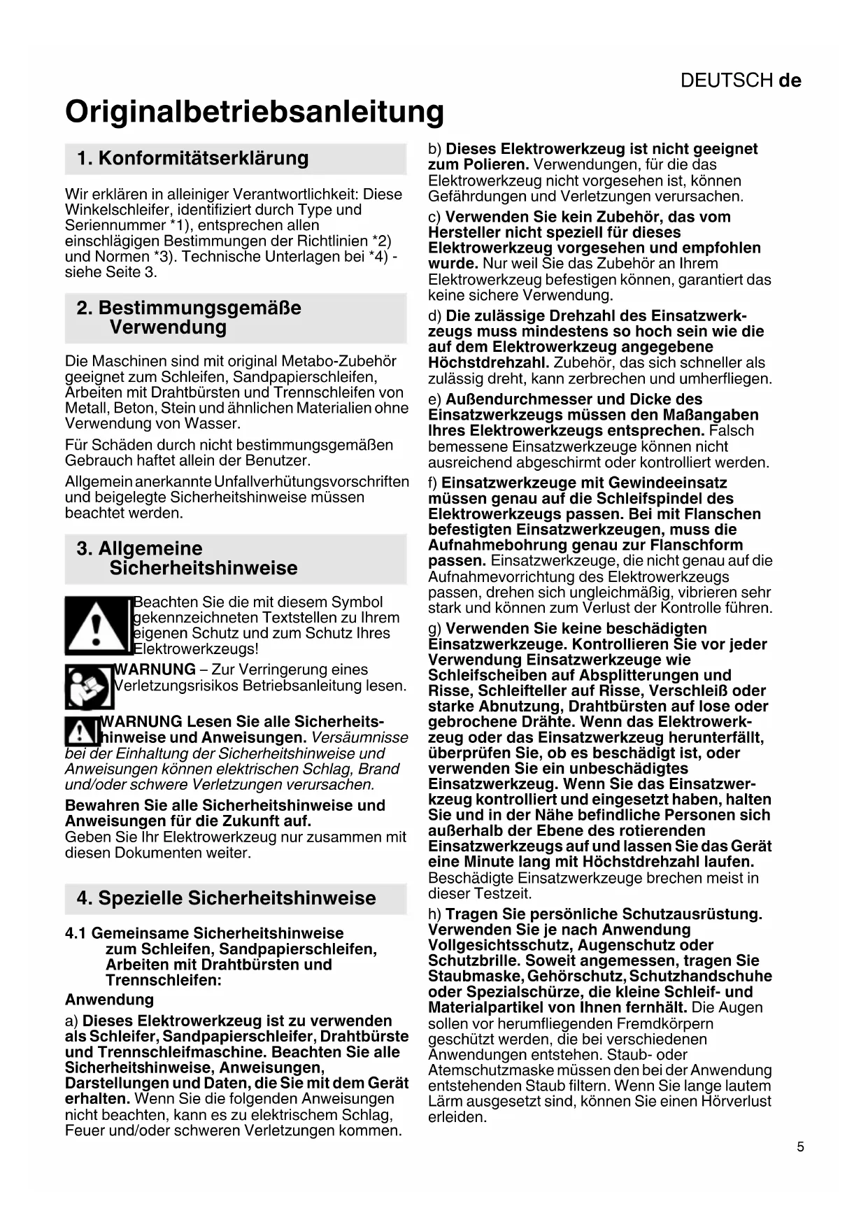 4. Spezielle SicherheitshinweiseDEUTSCHde