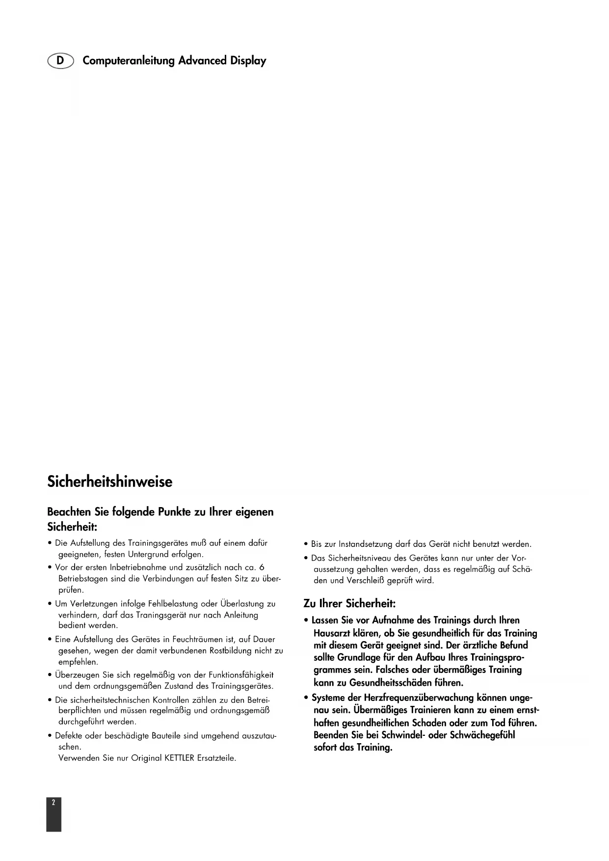 - Lassen Sie vor Aufnahme des Trainings durch Ihren Hausarzt klären, ob Sie gesundheitlich für das Training mit diesem Gerät geeignet sind. Der ärztliche Befund sollte Grundlage für den Aufbau Ihres Trainingspro- grammes sein. Falsches oder übermäßiges Training kann zu Gesundheitsschäden führen.
