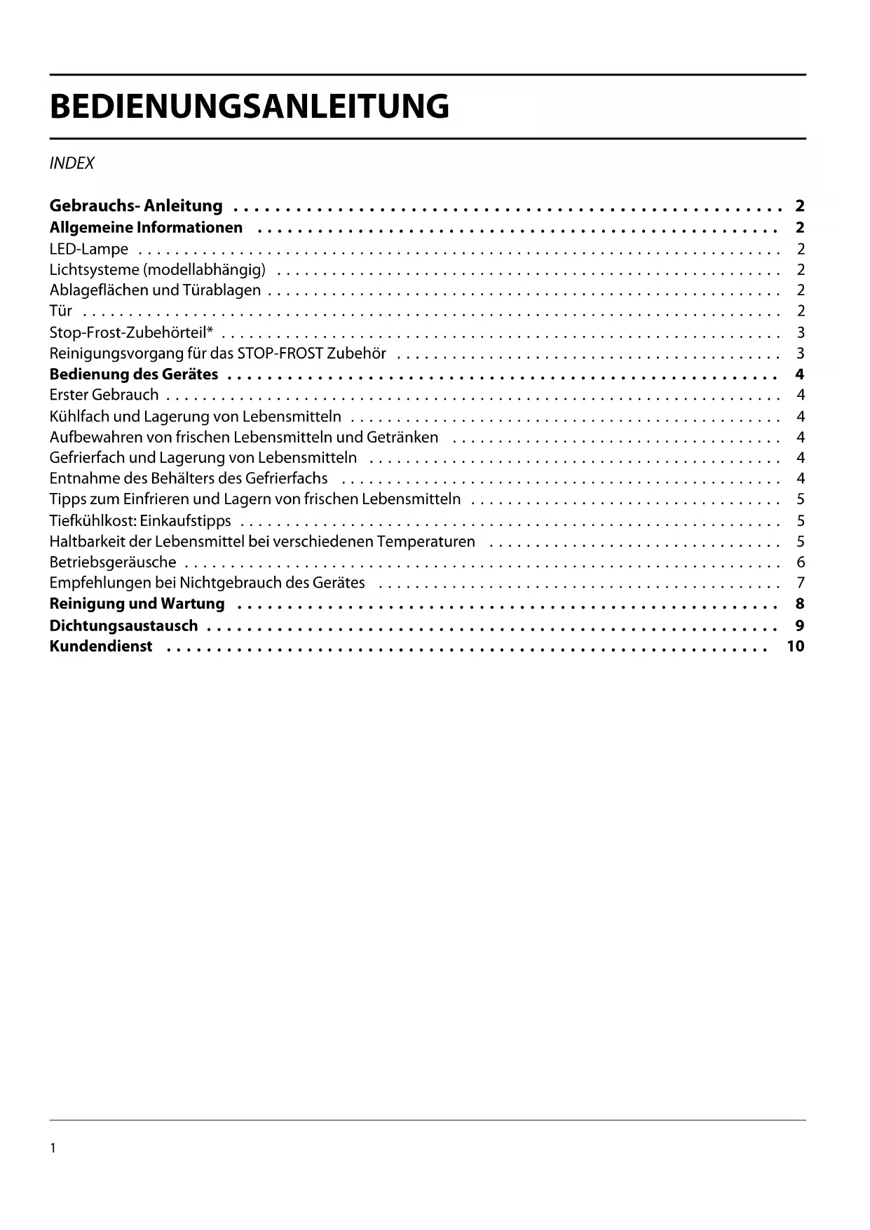 - Gefrierfach und Lagerung von Lebensmitteln p. 4