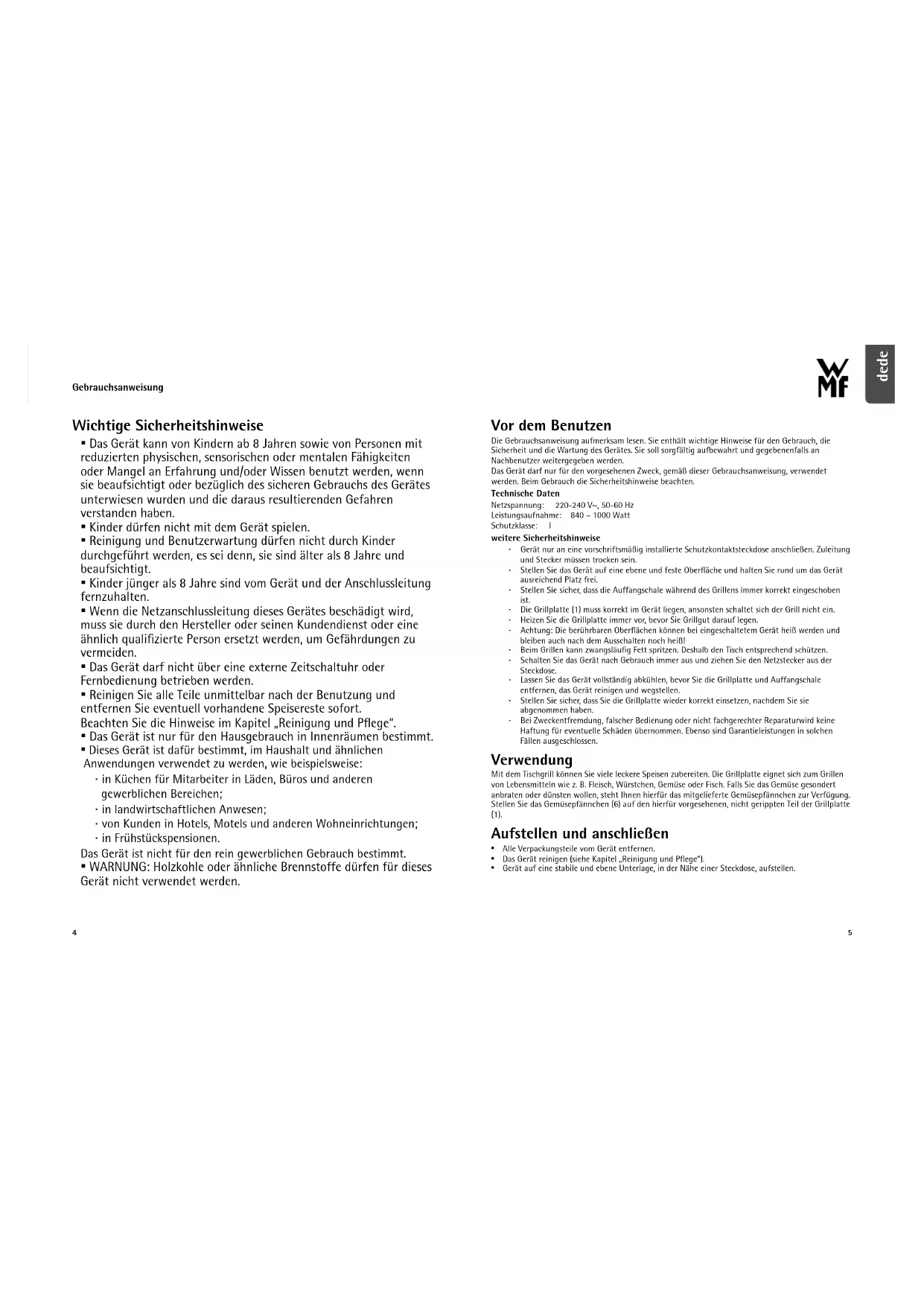 Laden Sie die Anleitung für Ihr Grillplatte kostenlos im PDF-Format! Finden Sie Ihr Handbuch 04.1517.0011 - WMF und nehmen Sie Ihr elektronisches Gerät wieder in die Hand. Auf dieser Seite sind alle Dokumente veröffentlicht, die für die Verwendung Ihres Geräts notwendig sind. 04.1517.0011 von der Marke WMF.