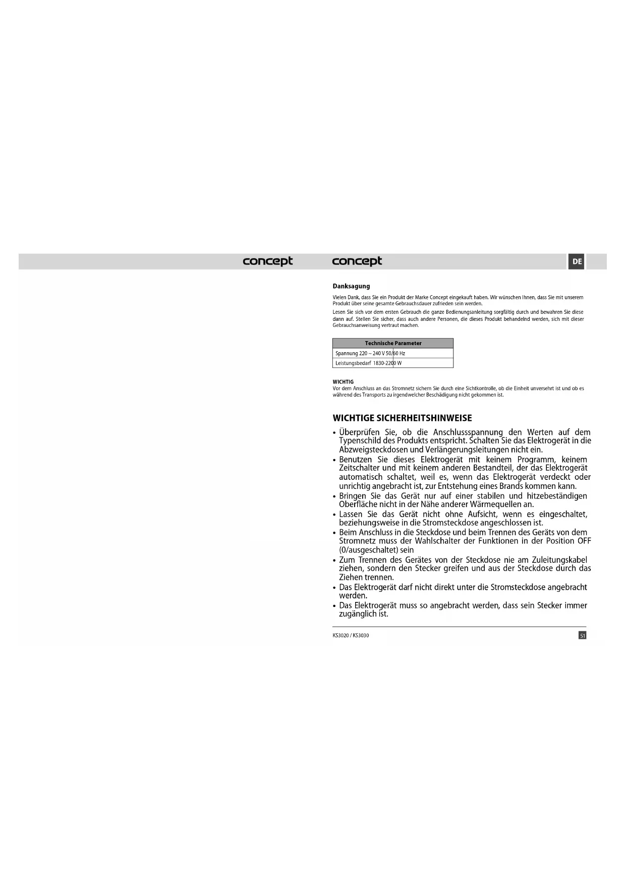 BEDIENUNGSANLEITUNG KS3020 Concept