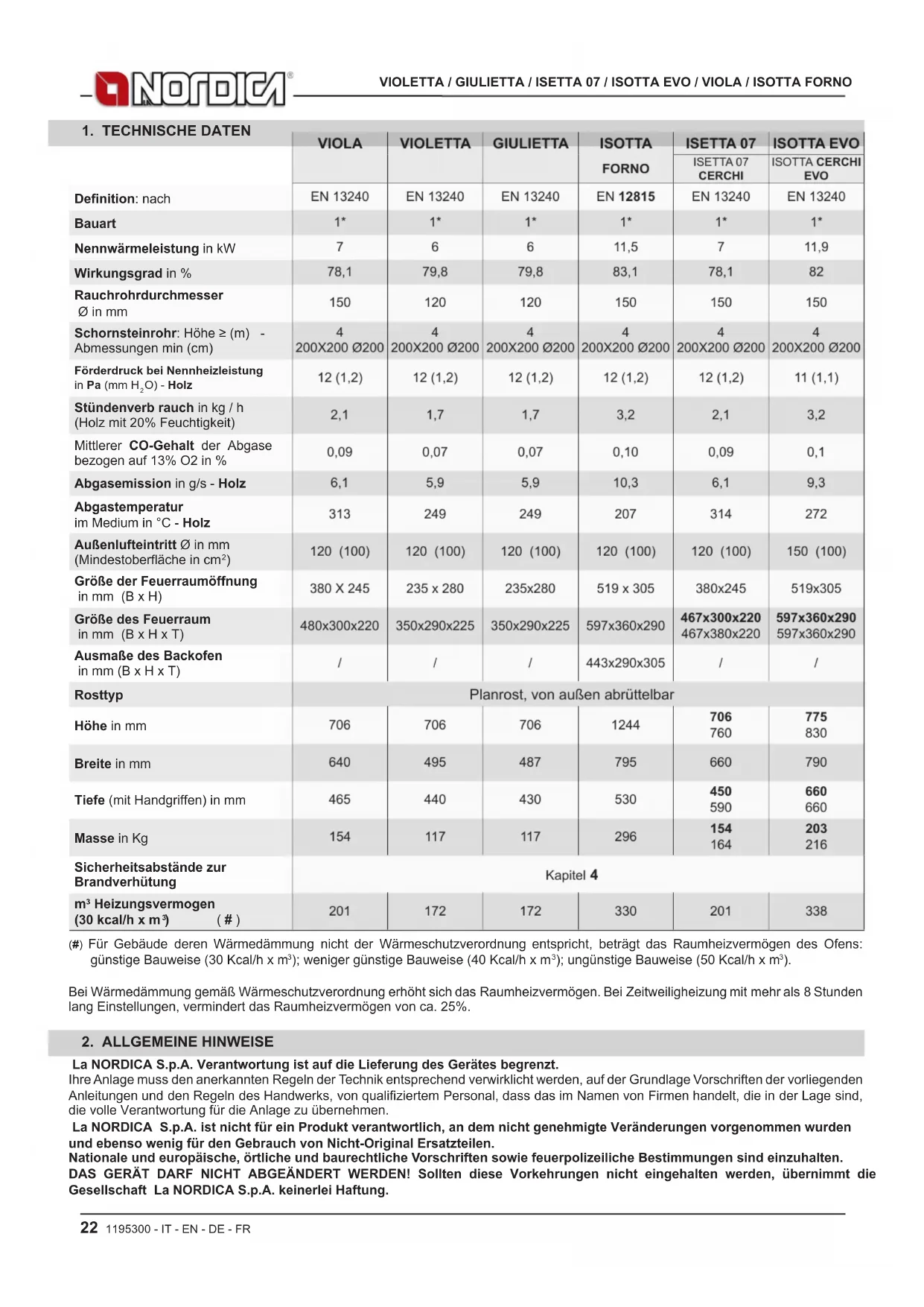 VIOLETTA / GIULIETTA / ISETTA 07 / ISOTTA EVO / VIOLA / ISOTTA FORNO