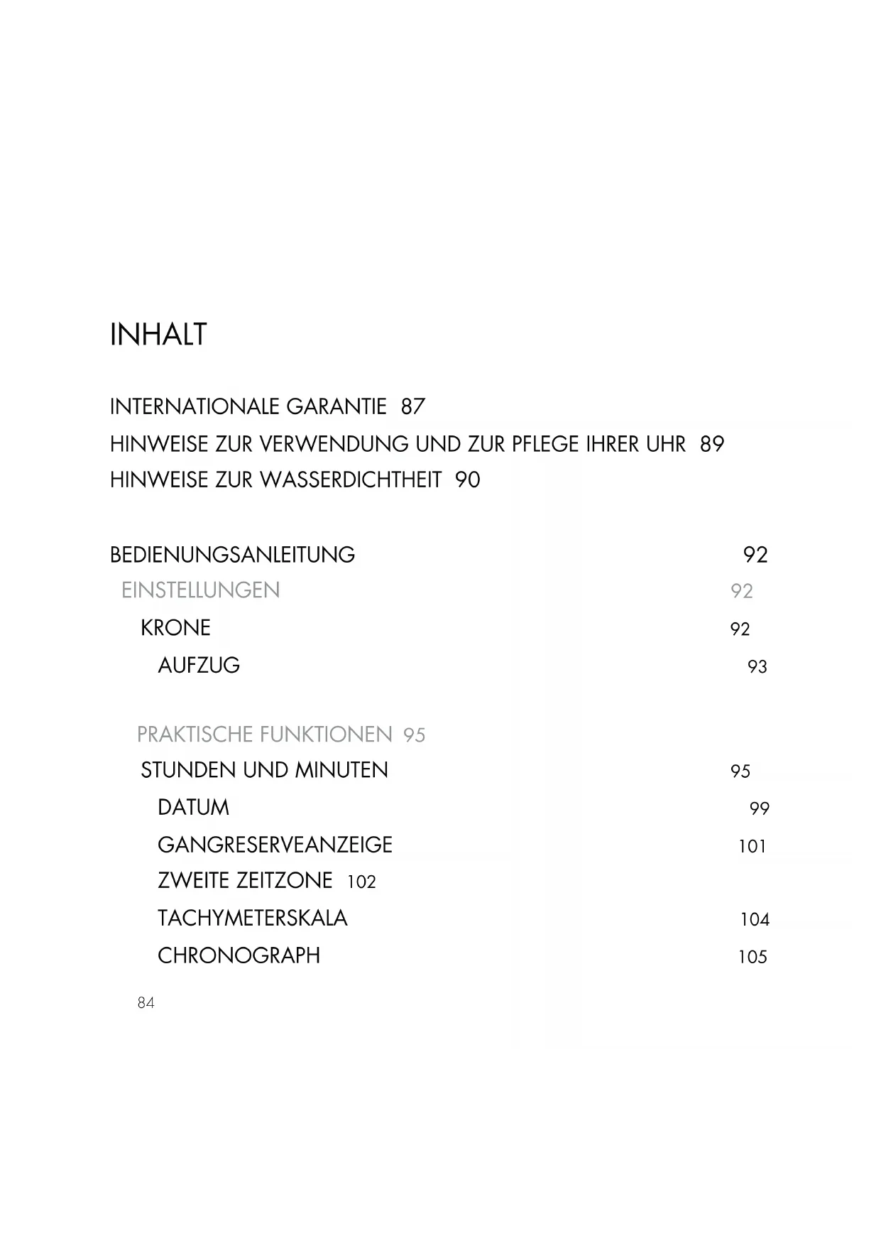 BEDIENUNGSANLEITUNG 92 EINSTELLUNGEN 92 KRONE 92 AUFZUG 93 PRAKTISCHE FUNKTIONEN 95