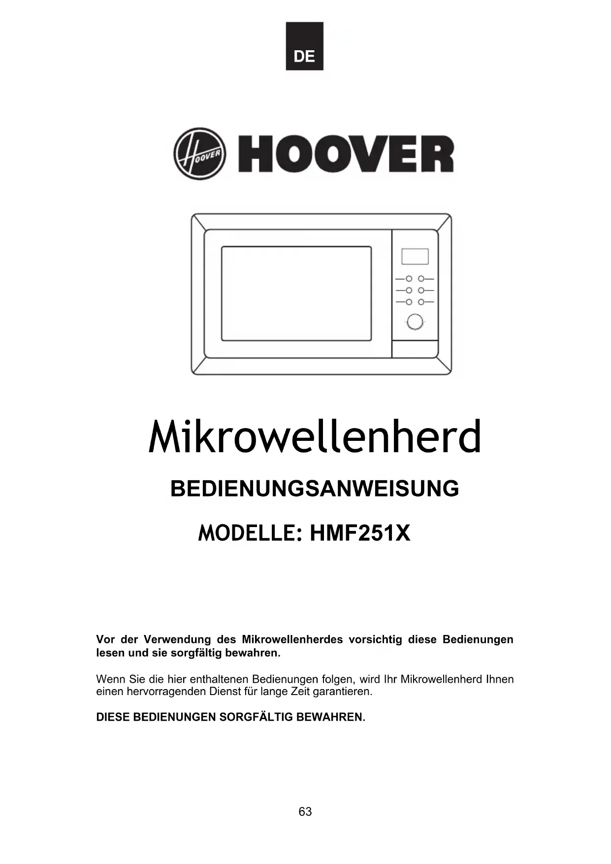 HMF251X - Mikrowelle HOOVER - Kostenlose Bedienungsanleitung