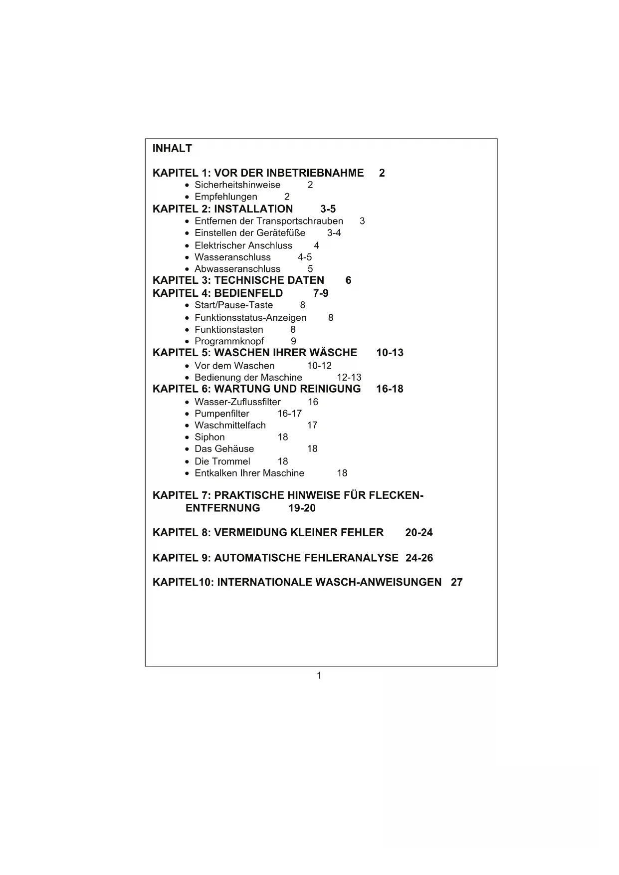 - Nach der Qualitätskontrolle kann eine gewisse Menge an Wasser in der Maschine verblieben sein. Das ist für die Maschine nicht schädlich. 2KAPITEL 2: INSTALLATION Vor der Inbetriebnahme Ihrer Waschmaschine müssen Sie die folgende. Punkte beachten.