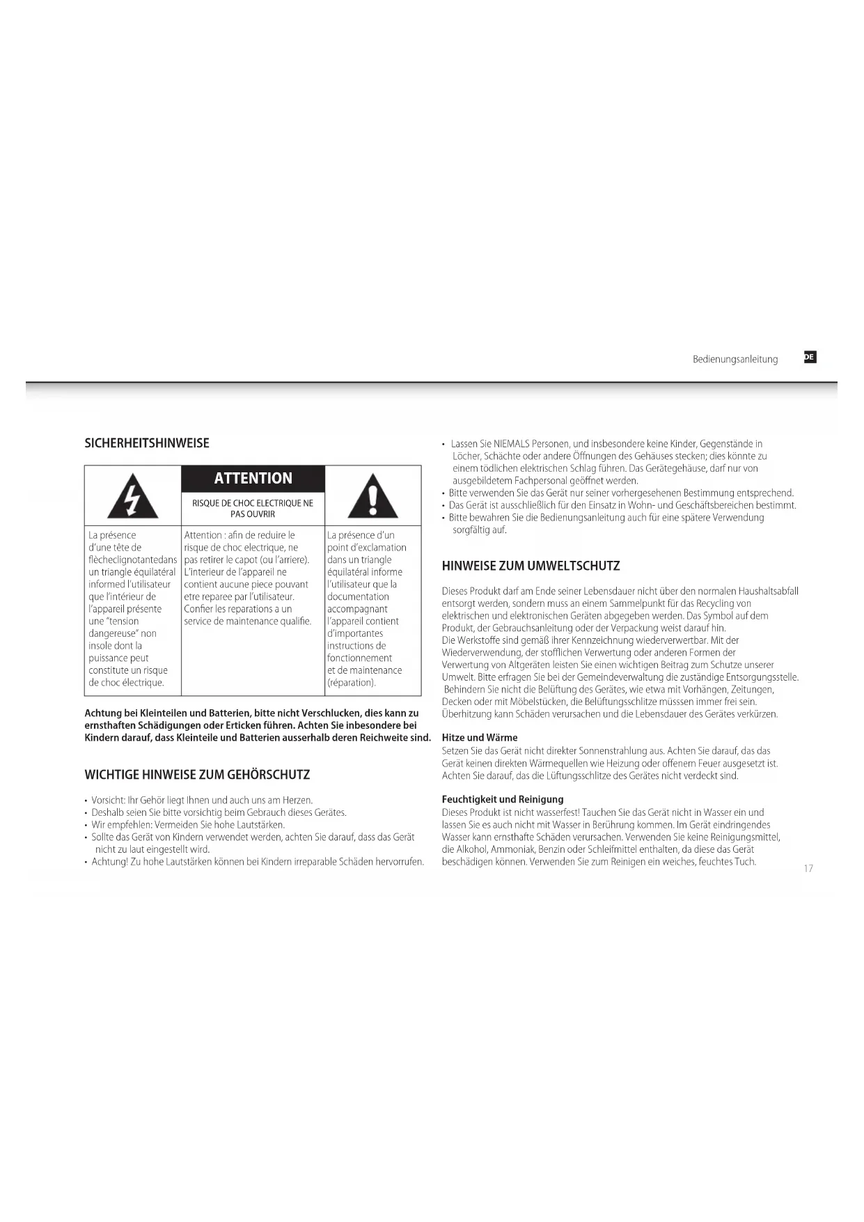 - Achtung! Zu hohe Lautstärken können bei Kindern irreparable Schäden hervorrufen.