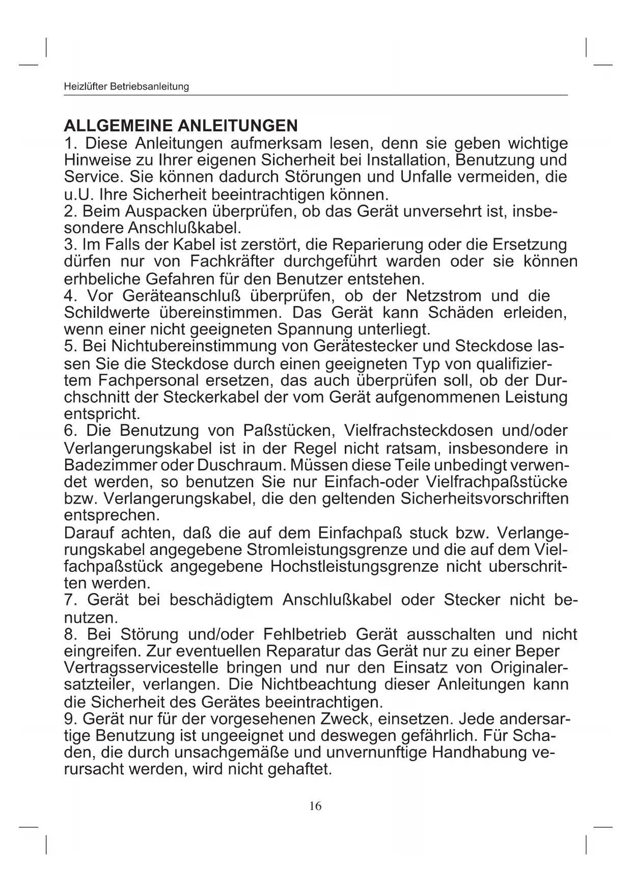 - HEIZLÜFTER - BETRIEBSANLEITUNG