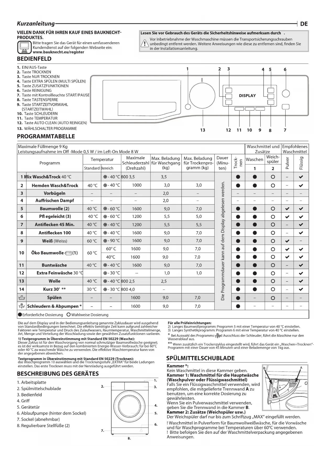 VIELEN DANK FÜR IHREN KAUF EINES BAUKNECHT- PRODUKTES. Bitte tragen Sie das Gerät für einen umfassenderen Kundendienst auf der folgenden Webseite ein: www.bauknecht.eu/register Lesen Sie vor Gebrauch des Geräts die Sicherheitshinweise aufmerksam durch