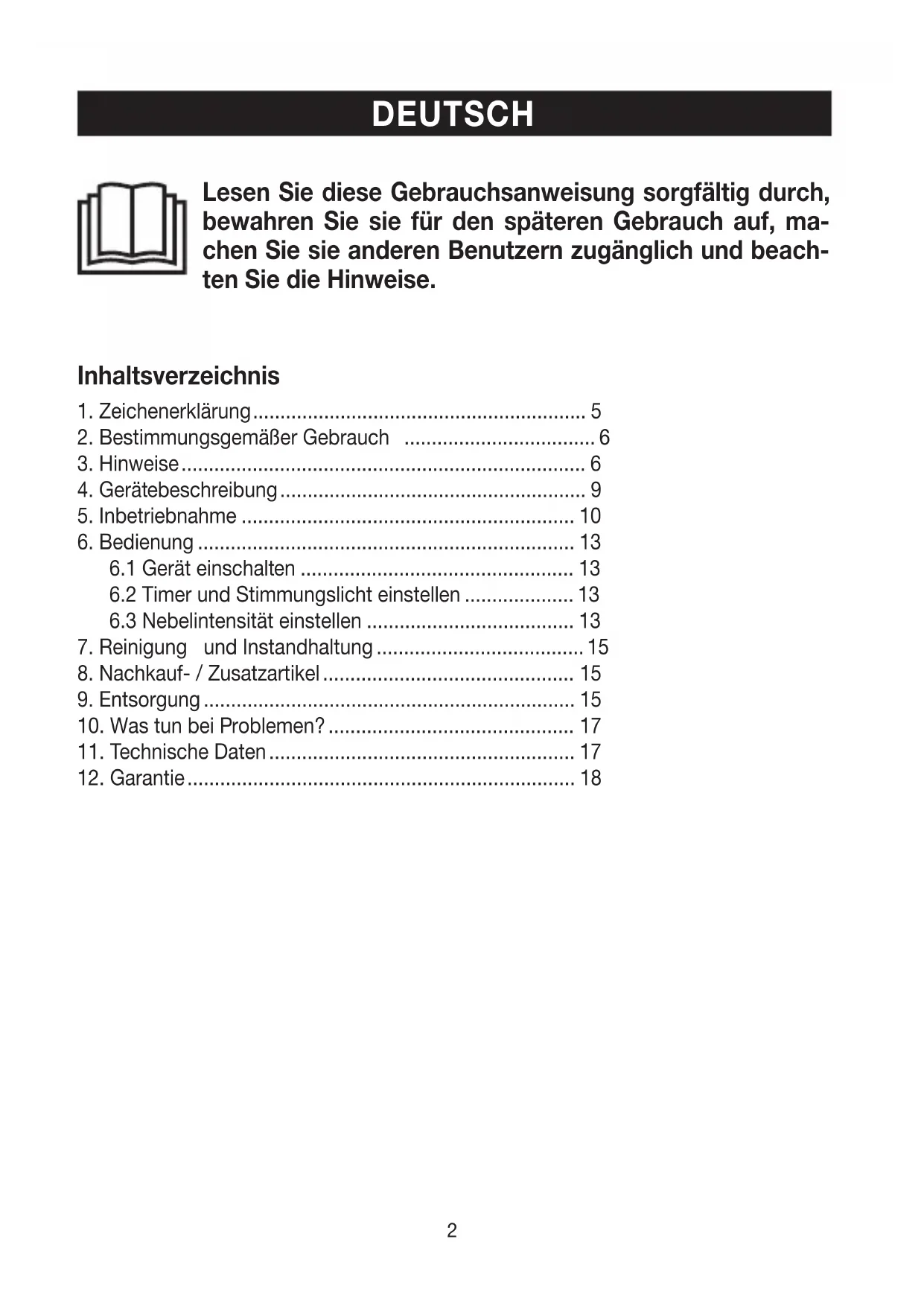 Der Aroma Diffuser ist ausschließlich zur Verbesserung des Raumduftes bestimmt. Das Gerät ist für den privaten Gebrauch bestimmt.
