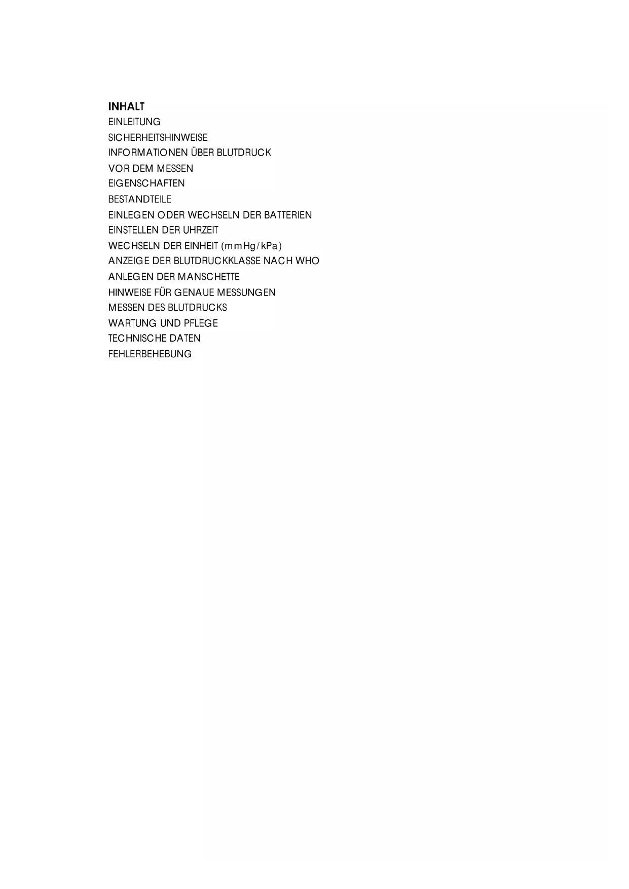 Weder das Gerät noch die Manschette des Blutdruckmessgerätes dürfenauseinandergebaut, repariert oder umgebaut werden, da dies anderenfalls zu Fehlfunktionen führen könnte.