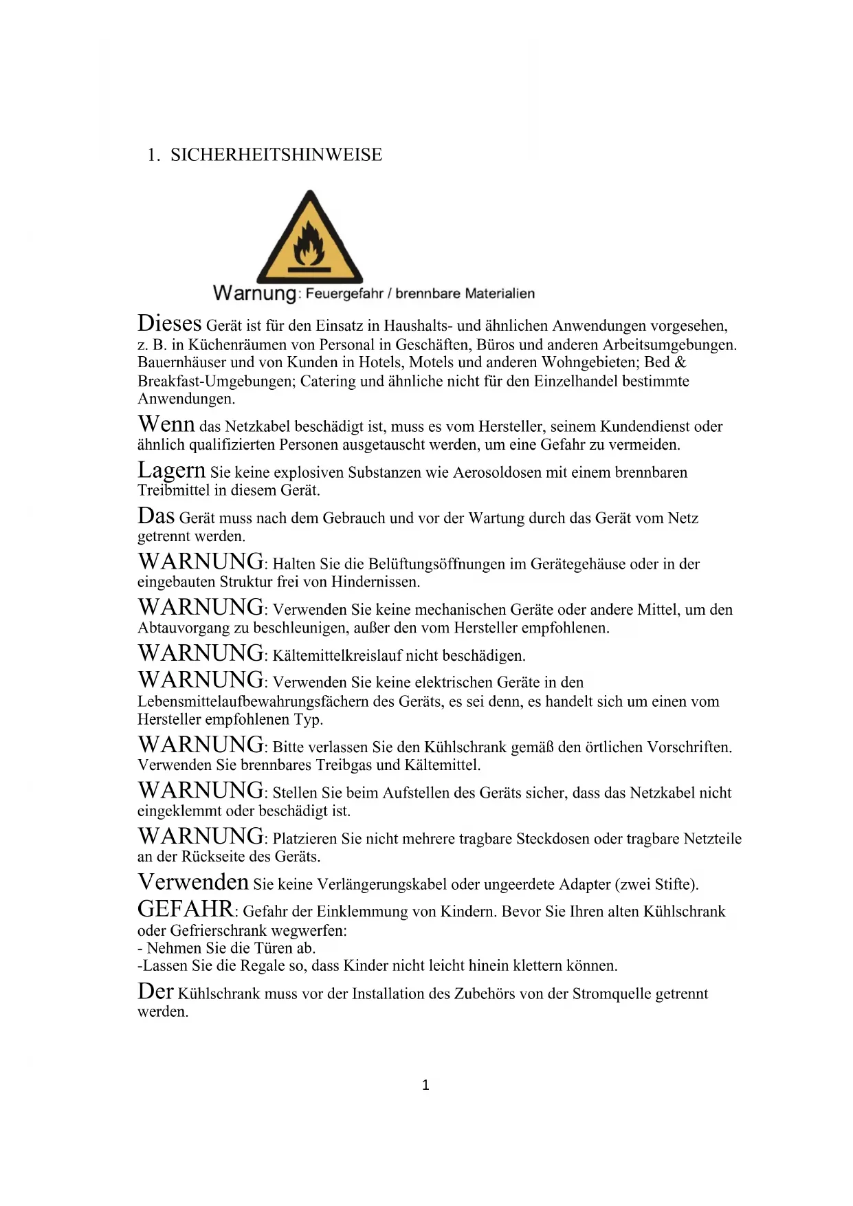 1. SICHERHEITSHINWEISE