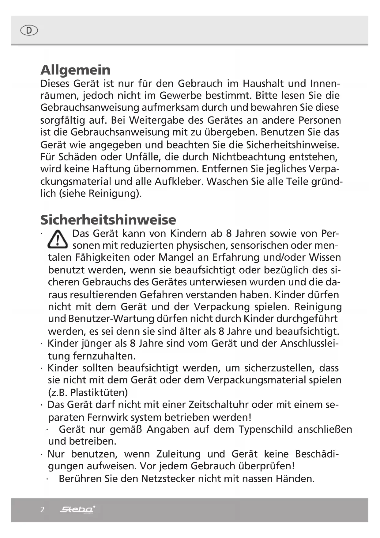 449-19 e-mail: elektro@steba.com Internet:http://www.steba.com