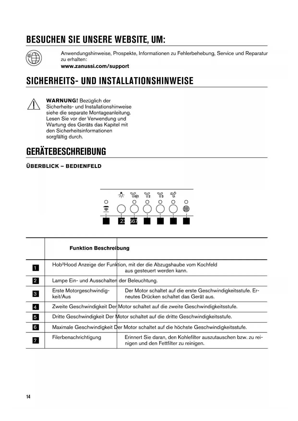ZFG816X - Dunstabzugshaube ZANUSSI - Kostenlose Bedienungsanleitung