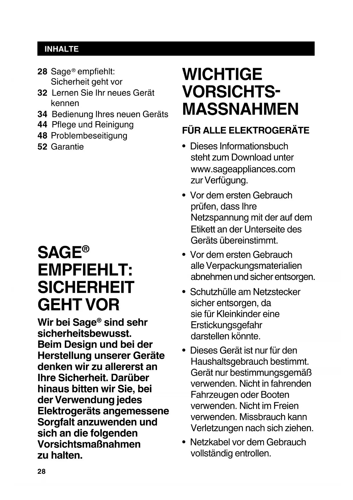 - Dieses Informationsbuch steht zum Download unter www.sageappliances.com zur Verfügung.
