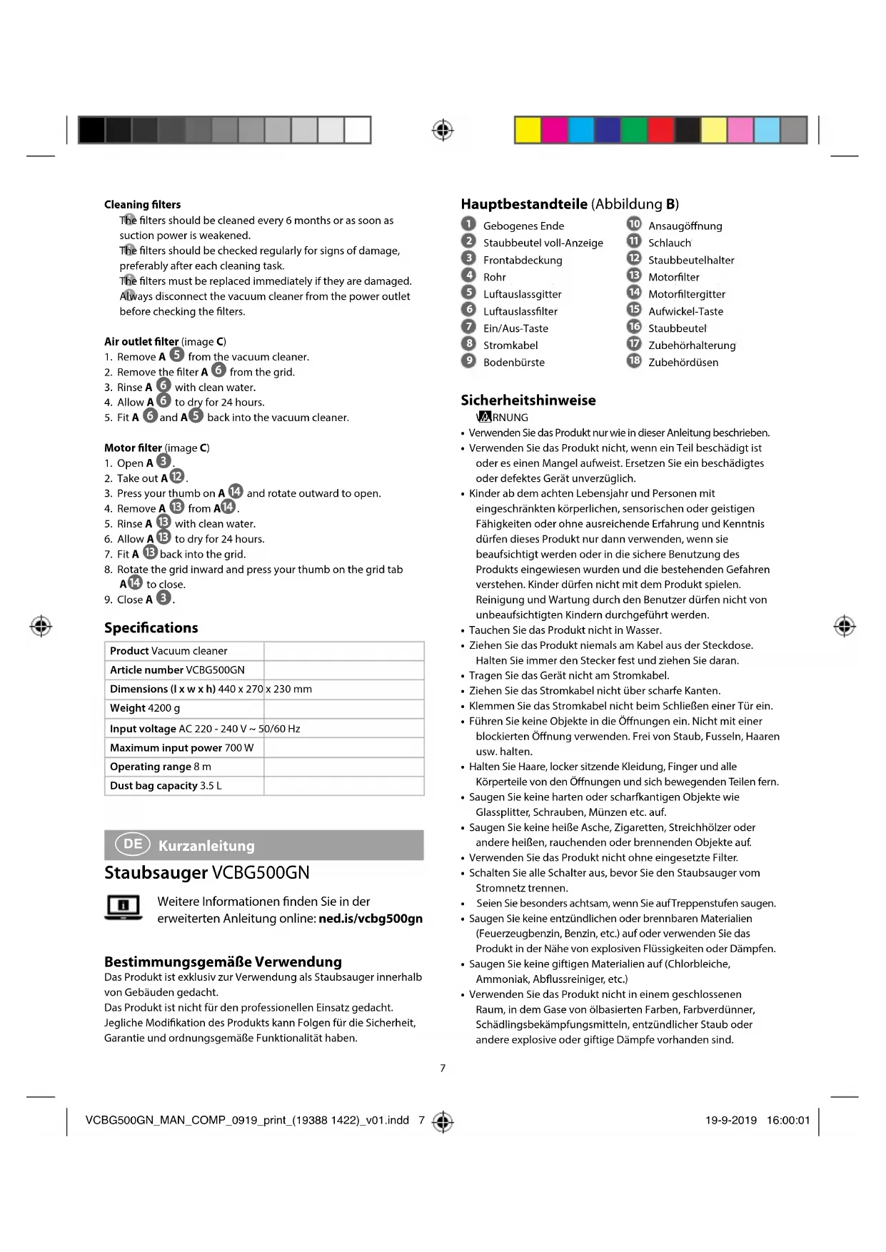 heraus und entsorgen Sie ihn. VCBG500GN_MAN_COMP_0919_print_(19388 1422)_v01.indd 8 19-9-2019 16:00:019