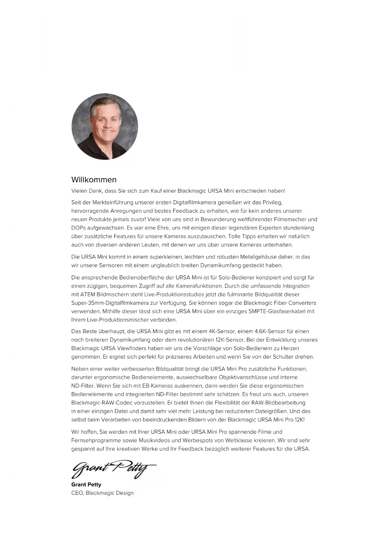 BEDIENUNGSANLEITUNG URSA Mini Pro 12K Blackmagic Design