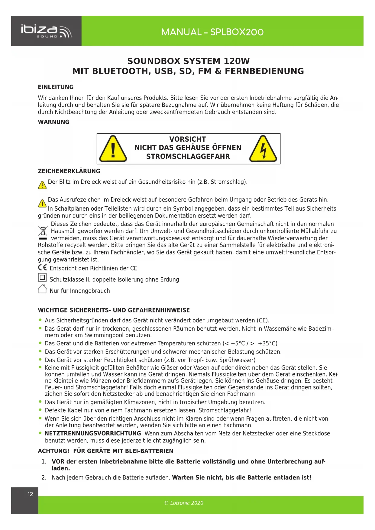 BEDIENUNGSANLEITUNG SPLBOX200 IBIZA SOUND