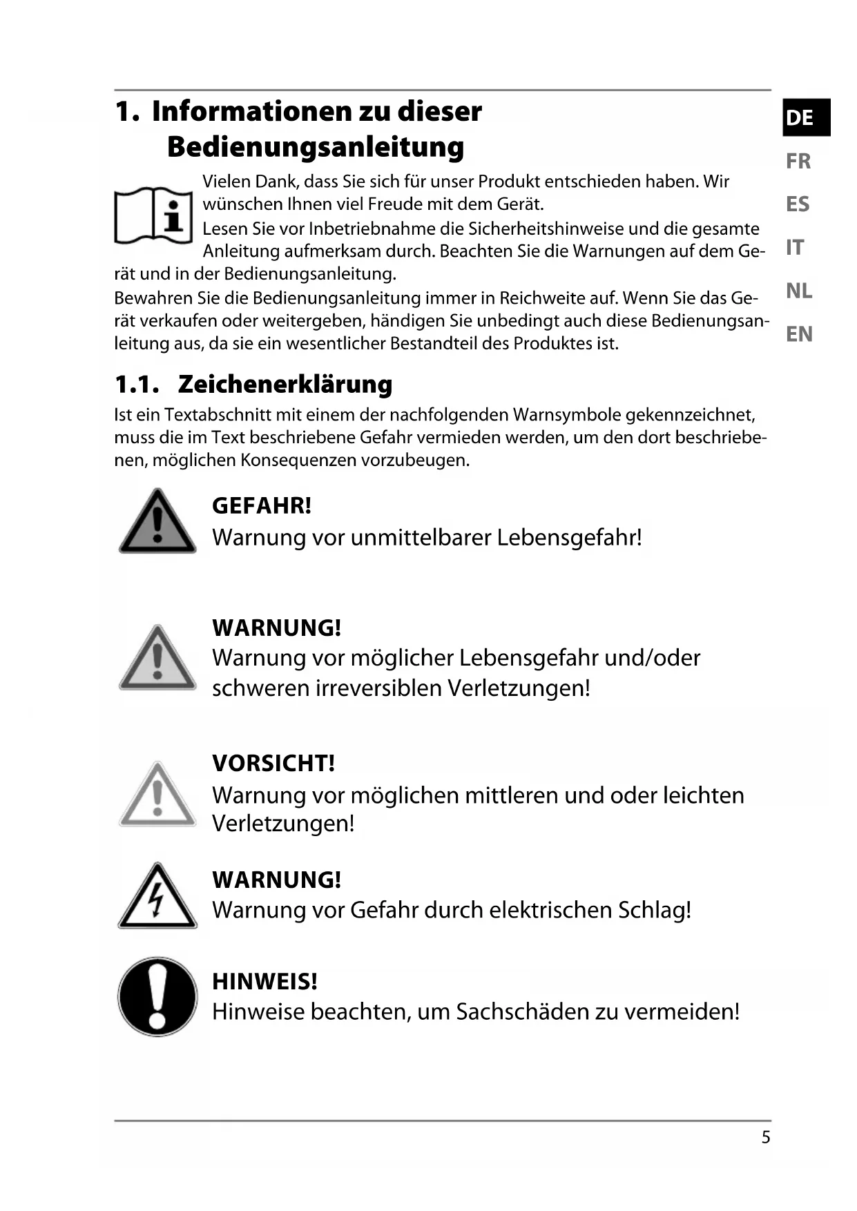 1. Informationen zu dieser Bedienungsanleitung ........................................ 5