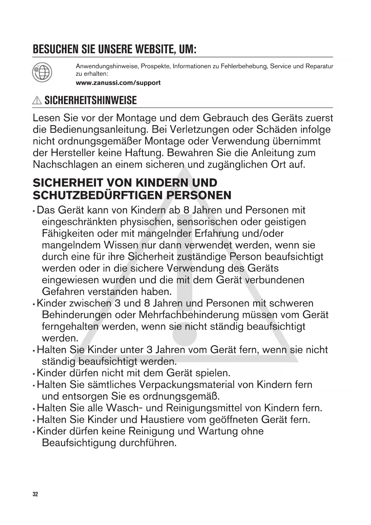 - Kinder dürfen keine Reinigung und Wartung ohne Beaufsichtigung durchführen. 32ALLGEMEINE SICHERHEIT
