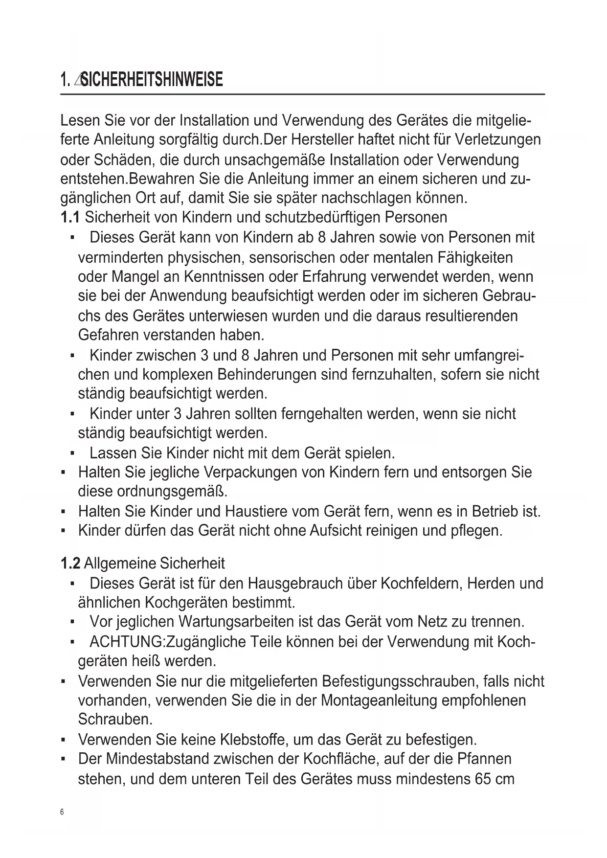 - Dieses Gerät ist für den Hausgebrauch über Kochfeldern, Herden und ähnlichen Kochgeräten bestimmt.