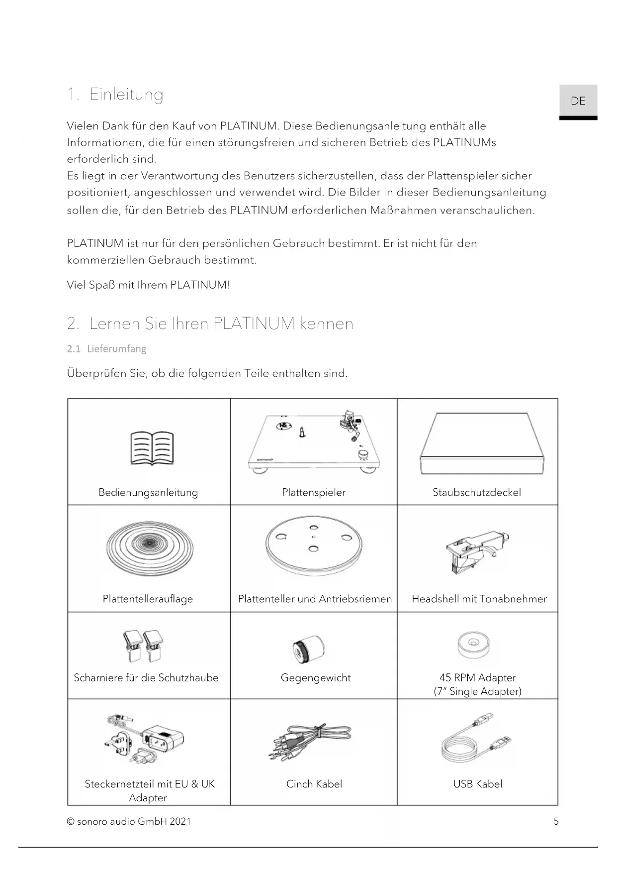 © sonoro audio GmbH 2021 3 PLATINUM SO-2000 PLATTENSPIELER