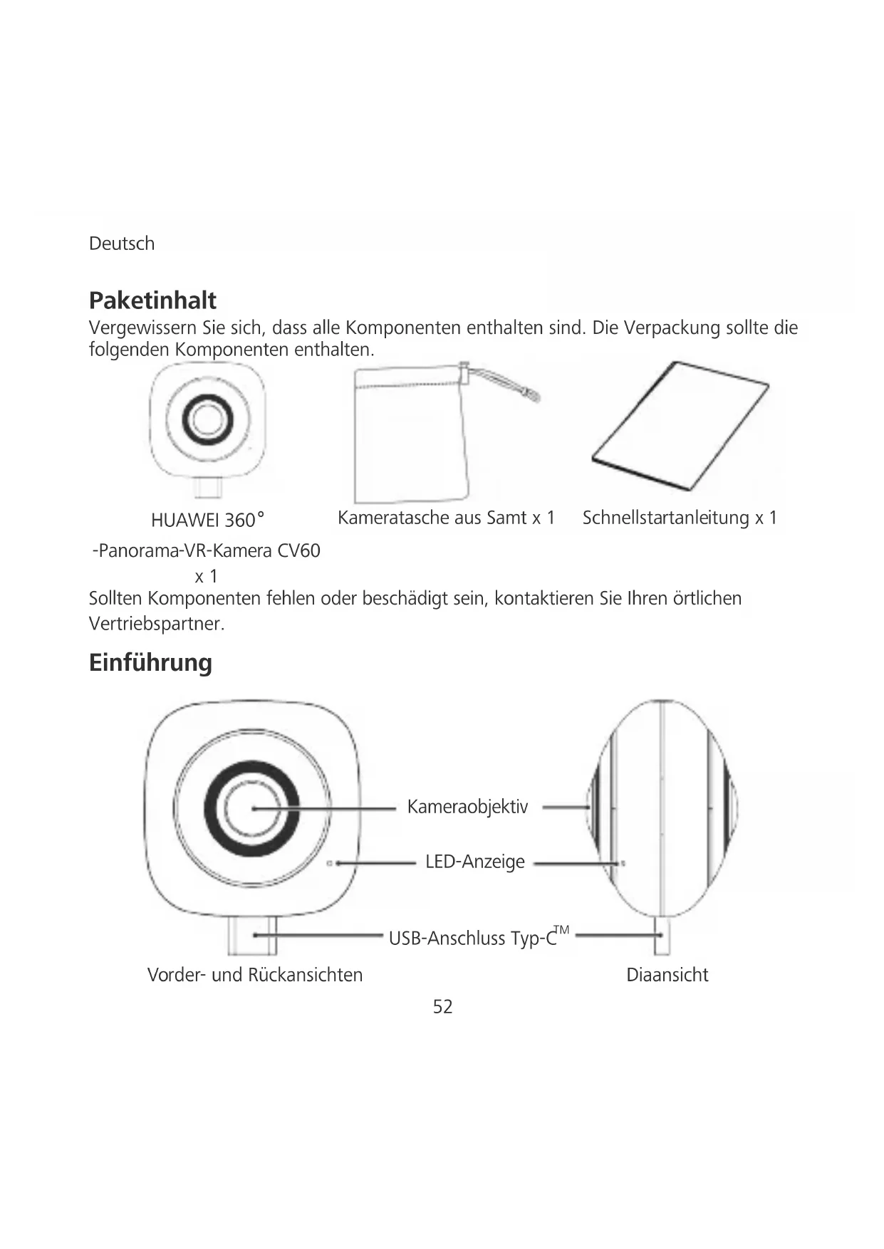 -Panorama-VR-Kamera CV60 x 1 Kameratasche aus Samt x 1 Schnellstartanleitung x 1 Sollten Komponenten fehlen oder beschädigt sein, kontaktieren Sie Ihren örtlichen Vertriebspartner. Einführung