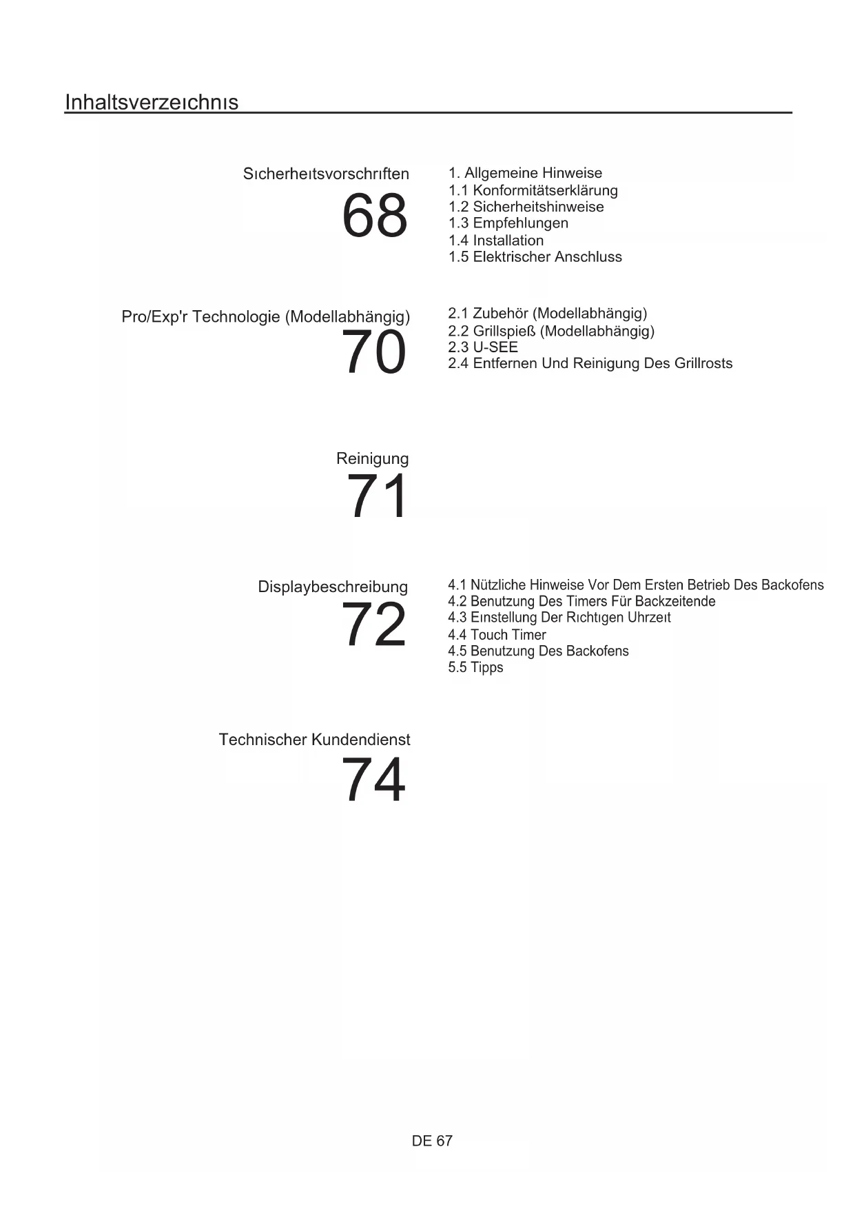 DE 67 Technischer Kundendienst 74SICHERHEITSVORSCHRIFTEN DE 68