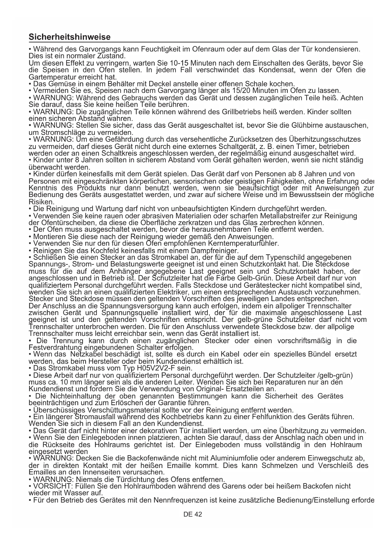 - Das Stromkabel muss vom Typ H05V2V2-F sein.