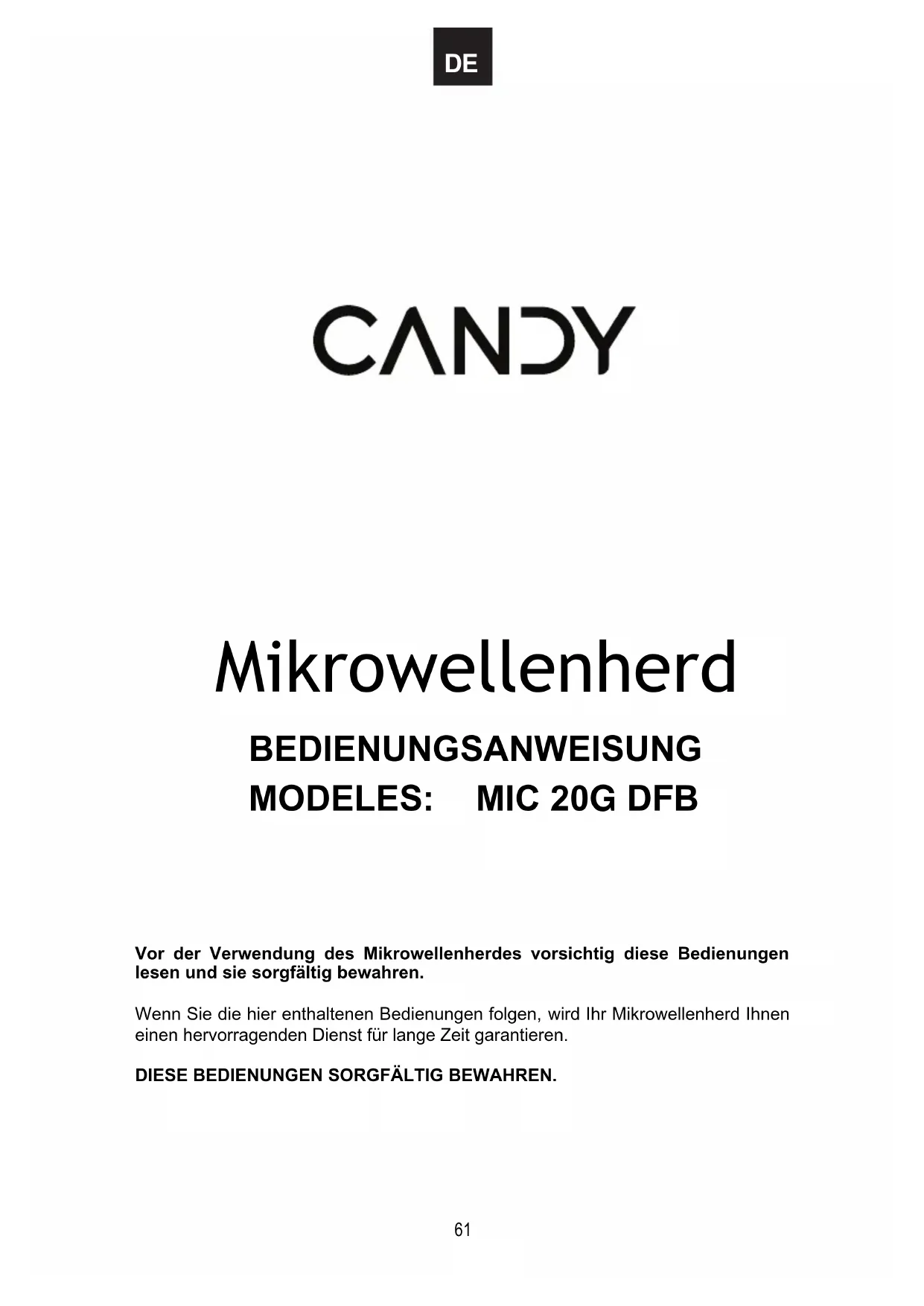 BEDIENUNGSANLEITUNG MIC20GDFBA CANDY