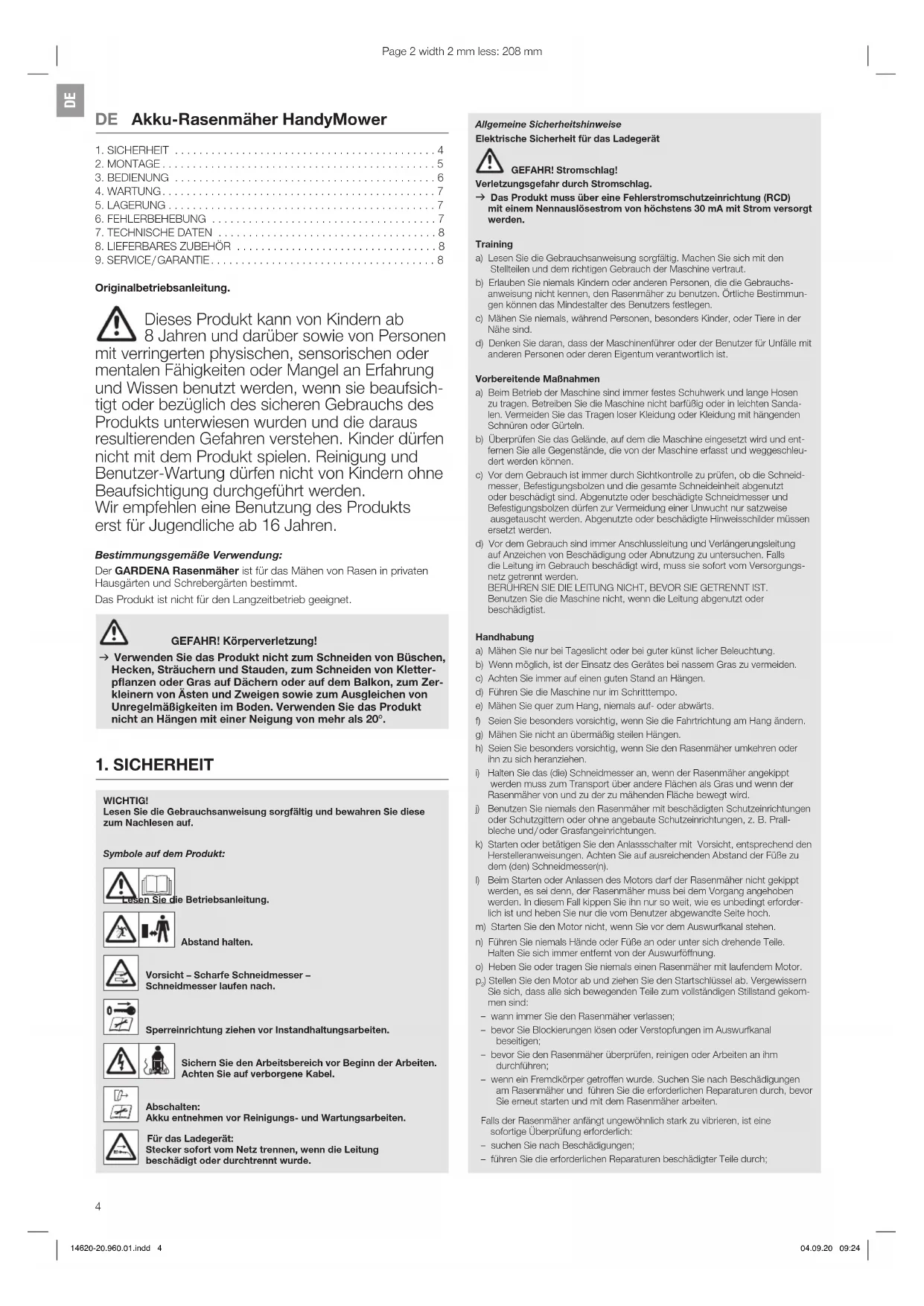 14620-20.960.01.indd 3 04.09.20 09:24DE Akku-Rasenmäher HandyMower