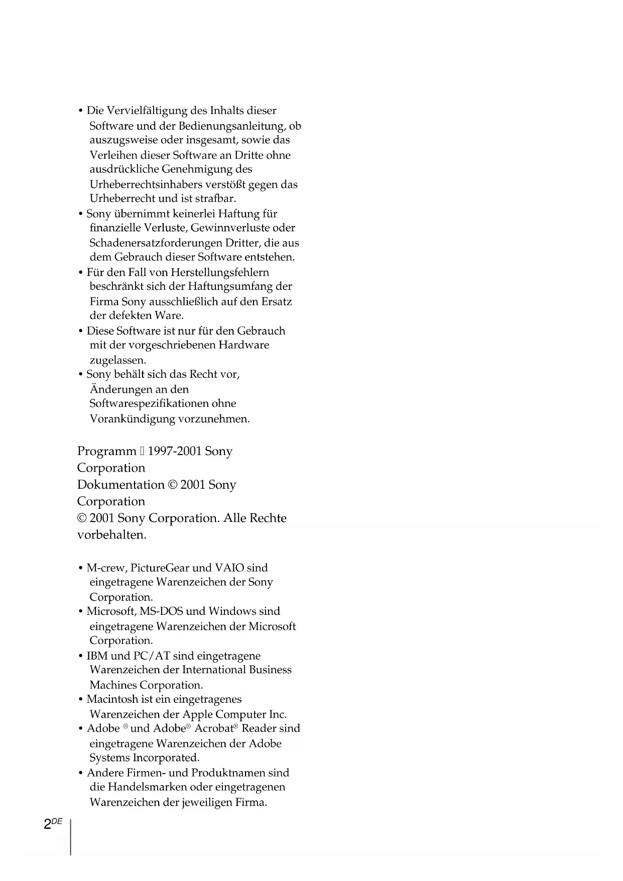 - M-crew, PictureGear und VAIO sind eingetragene Warenzeichen der Sony Corporation.