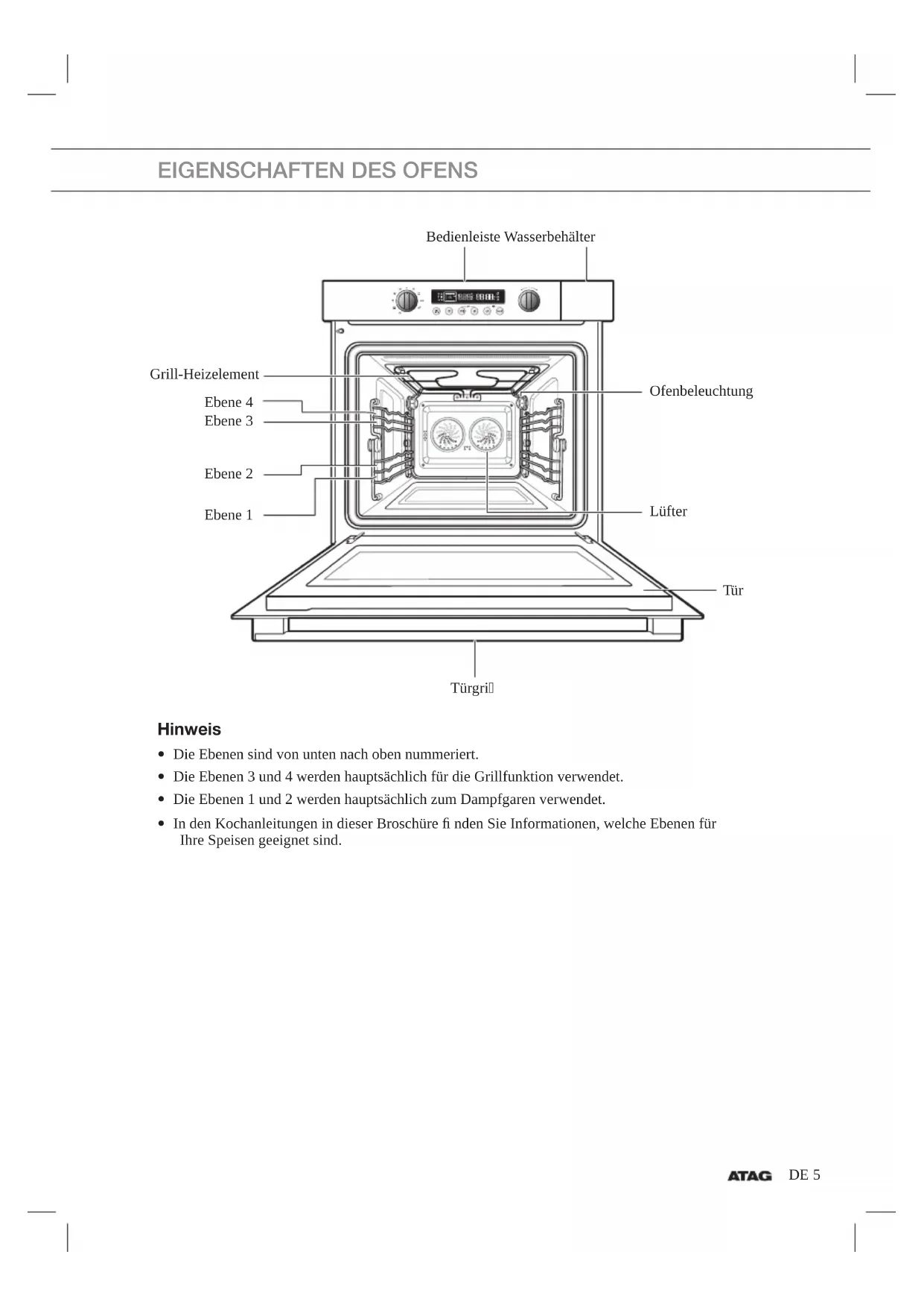 Vielen Dank für den Erwerb dieses Kombi-Dampfgarofens von ATAG. Ihre Benutzeranleitung enthält wichtige Informationen zur Verwendung und Pfl ege Ihres neuen Kombi-Dampfgarofens. Die Installationsanweisungen sind separat mitgeliefert. Lesen Sie sich vor dem Gebrauch Ihres Kombi-Dampfgarofens die Sicherheitshinweise und alle Informationen in dieser Bedienungsanleitung durch und bewahren Sie diese zur Konsultation bei später auftretenden Fragen auf. OFEN Sicherer Gebrauch